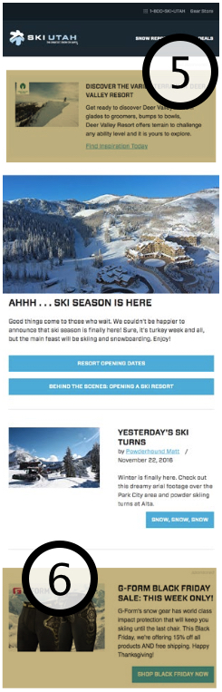- Advertiser's message wrapped in Ski Utah template (header & footer)