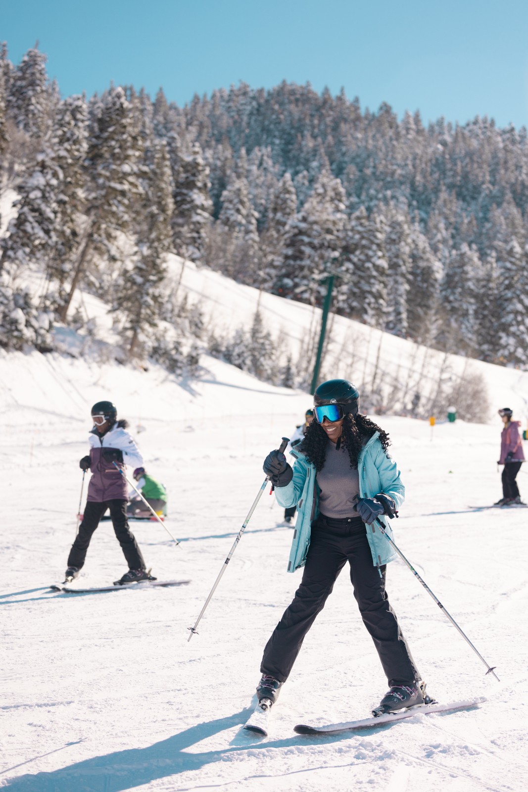 There are five skiers to every instructor, and on this day, Eby and Chichi’s group continued to get comfortable with their newfound skills on the beginner slope. They focused on speed control and maneuvering their bodies to help guide their skis and turns. Participants are asked to eat before heading to the resort, and I can confirm that it was a solid three hours of skiing.