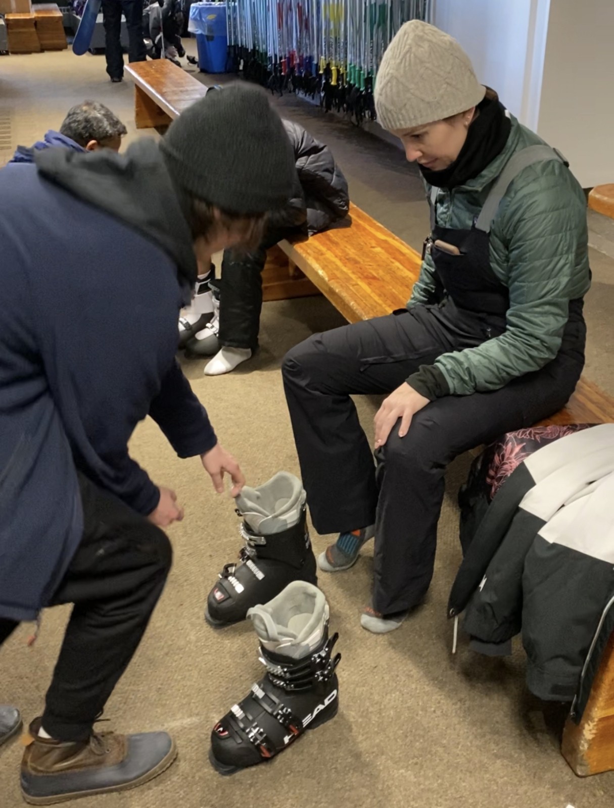 Once we arrived, the process of getting Erica set up with rental gear was a breeze. The staff at the Brighton Mountain Sports Rental Shop took Erica's measurements, were patient during the boot fitting and sent Erica off feeling comfortable and confident in her equipment (which is no small feat if you know the awkwardness that is walking in ski boots for the first time).