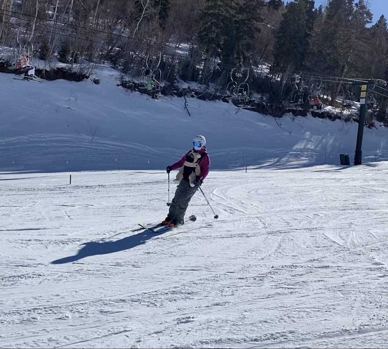 *I have my kid strapped into an Ergo baby carrier and skiing a green run with him. They love the breeze and rhythmic turns.
