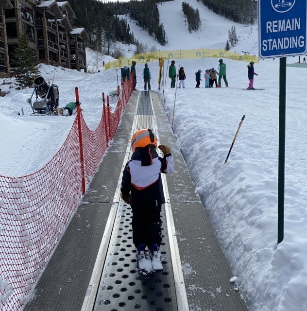 I started by lapping the smallest magic carpet run before moving to a chairlift. They may do two laps before they want to warm up. They may want to do 15 laps. Depending on interest, ability, comfort level, and maybe even naptime schedule – let them take the lead on how long they want to be out there and be their biggest fan and cheerleader.