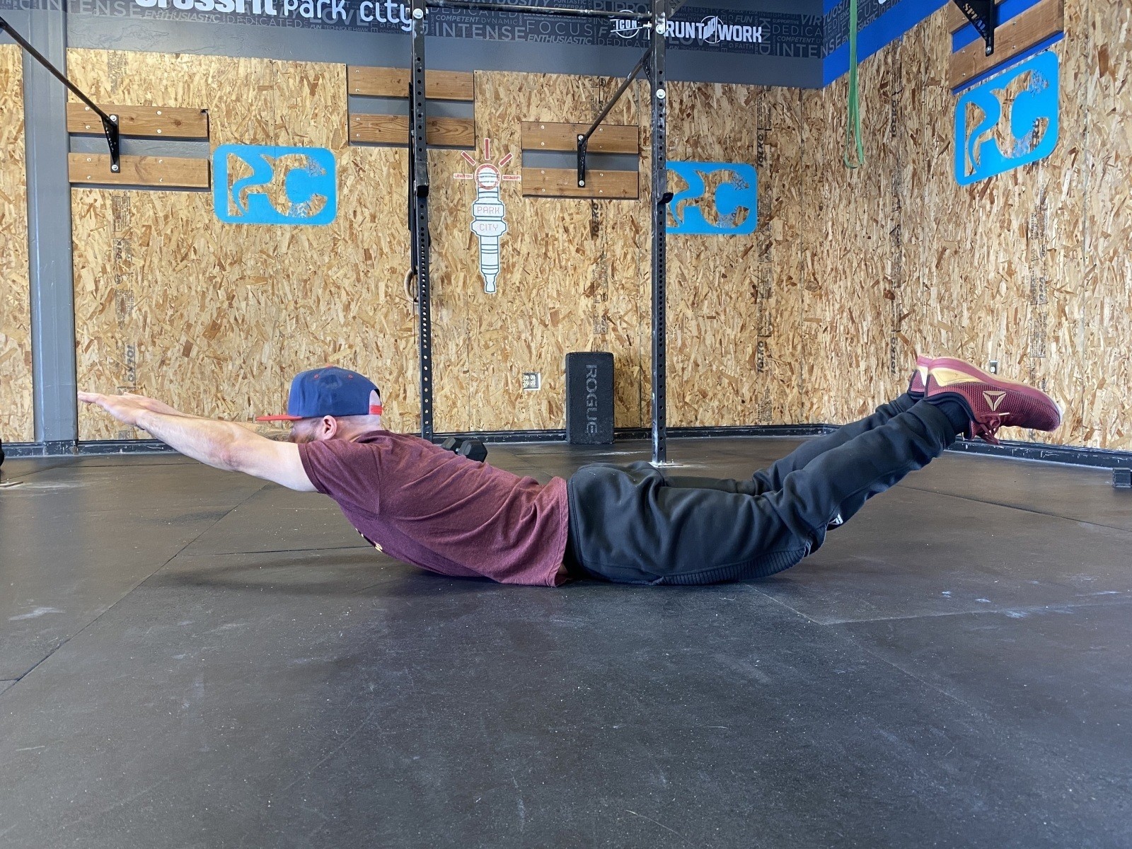 This is basically the opposite of the hollow hold. Now, your stomach is down on the ground, and you're trying to lift your chest up off the ground as well as your thighs. Squeezing your legs together and pointing your toes can help create a bit more tension here and make it “easier” to hold this position. Progressions into this really boil down to effort. Even trying to create the position has value if you can’t get there quite yet. Same as the hollow hold, some of you may even be able to rock back and forth here.