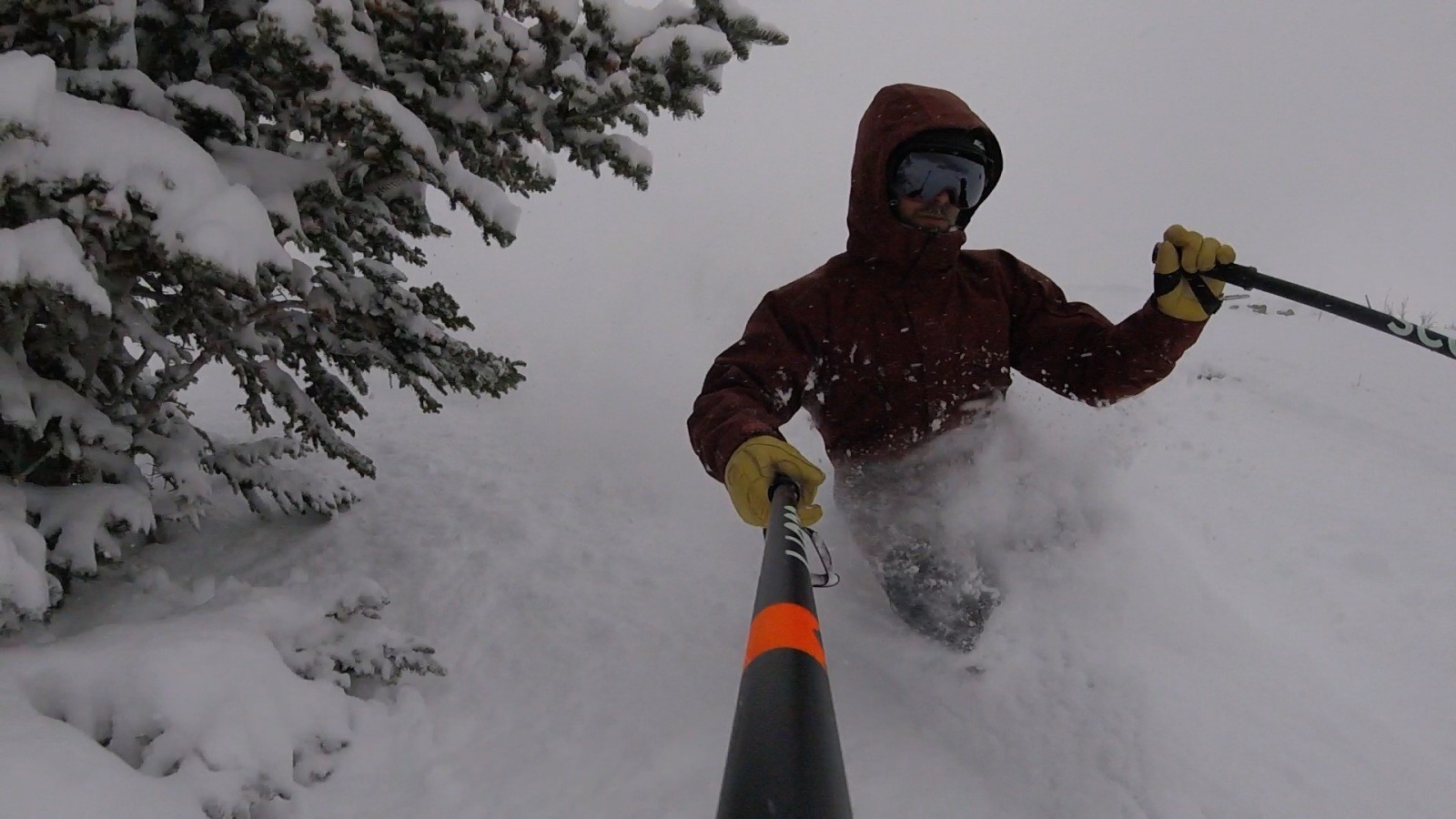 Visibility is such a game-changer on these days! Don’t underestimate it. Have the right goggles at the top of the list for your enjoyment on these days. I made the mistake of leaving my goggles in the van overnight and it nearly ruined the next day for me. Once moisture gets between the lenses and it’s cold/unable to dry you’re in for it. Assuming you don’t make that mistake you will likely want a good low visibility lense. When you buy a pair of Smith goggles, most will come with two different lenses. One for bright light and the other for low light. The low light lenses tend to have a yellow or rose tint to them and are super helpful on stormy days with low visibility. They help reduce flat light scenarios and can take your riding from gingerly wandering around to hard-charging.