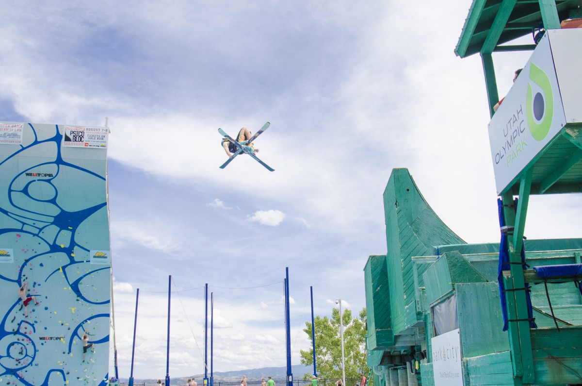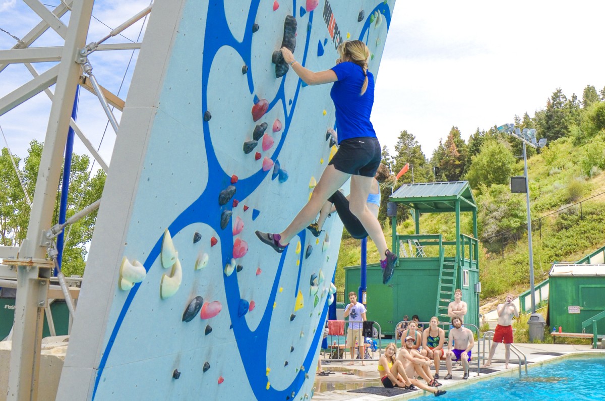 The Psicobloc (aka deep water soloing) wall at Utah’s Olympic Legacy Park gives climbers a chance to challenge their bodies and fears through August 24th. Built by Waltopia, the Psicobloc wall towers 50 feet over a pool, overhanging roughly 25 feet. Set up with multiple routes, climbing it can be as easy or difficult as you like. The tough part is letting go and plunging into the pool. While your head may know it’s safe, it’s still tricky keeping fear in its place.