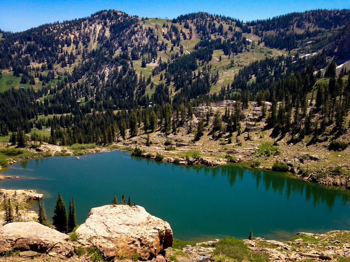 This pretty lake is a short trek from the Brighton Ski Resort parking area. It’s tucked beneath jagged peaks, adding drama to the already pretty landscape.