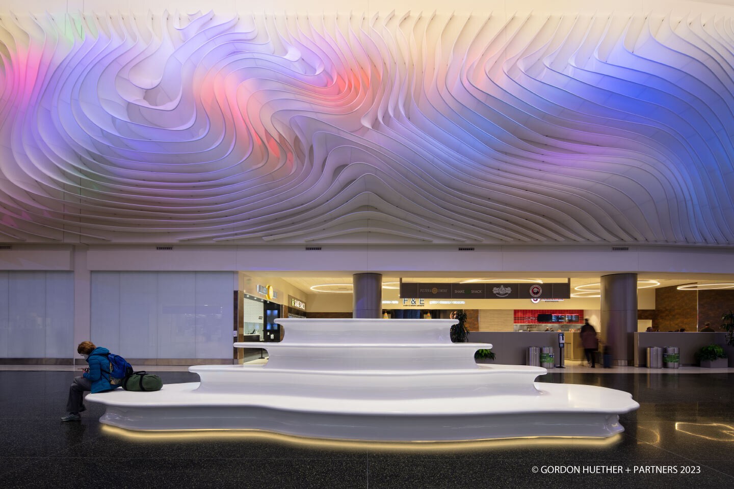 Coming in 2024, Phase 3 includes The Central Tunnel—connecting A and B Concourses—with people movers and a unique art installation called The River Tunnel, by Artist Gordon Huether. Additionally, there will be a mini plaza and five new gates on B Concourse plus 12 new concessions including some local favorites such as Cotopaxi, Sunday’s Best, Freddy’s Steakburger and more.