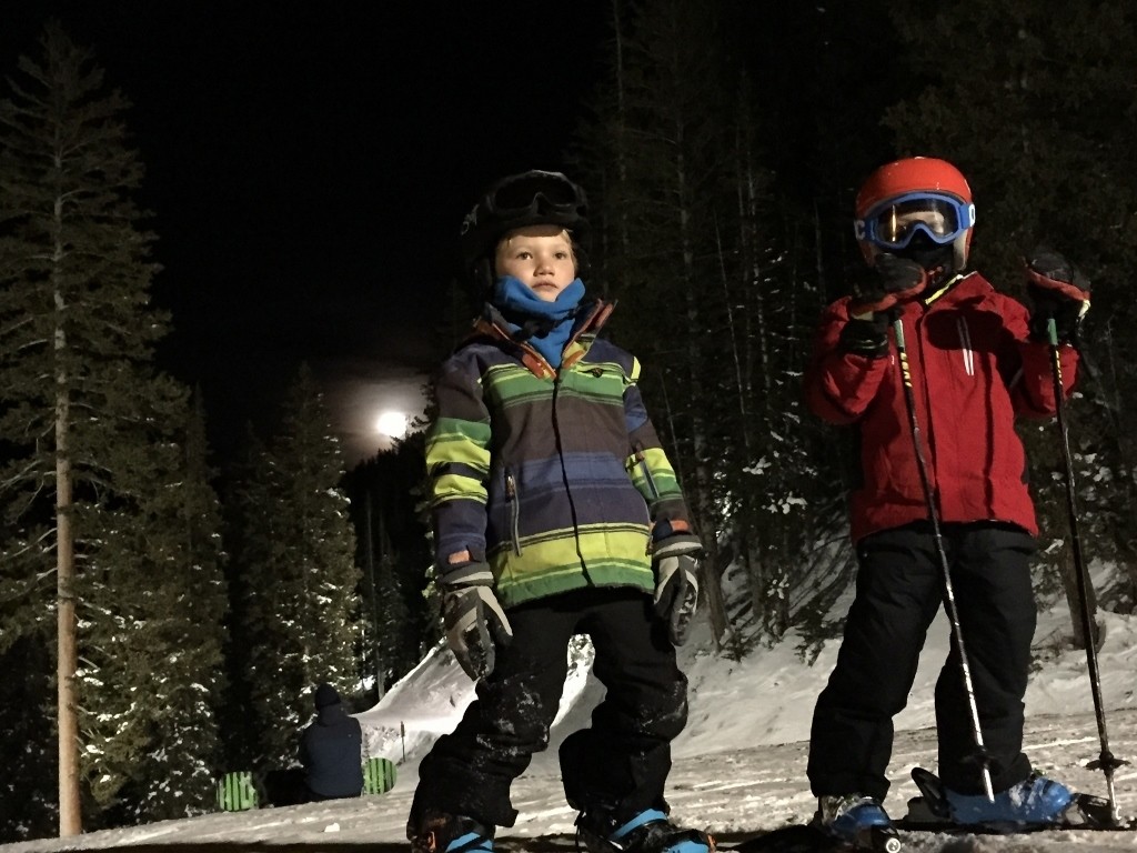 There are varied terrain options depending on the resort. On this particular night, we were at Brighton. You can see very few people on the slopes so Brennan can try out some of his hand dragging moves..(so I don't know snowboard lingo.)