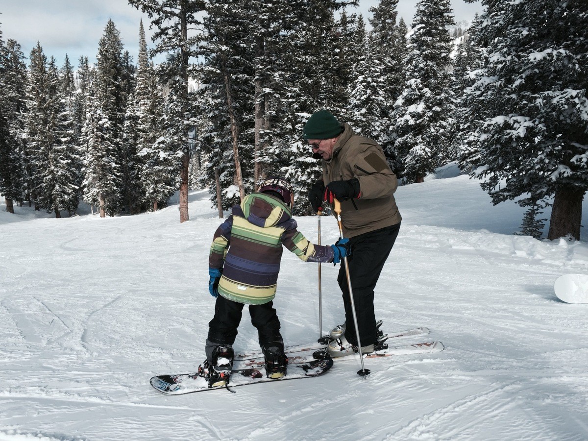 Bren tends to think the terrain park and trees are a good idea. I probably wouldn't encourage that on the first outing with Grandpa.