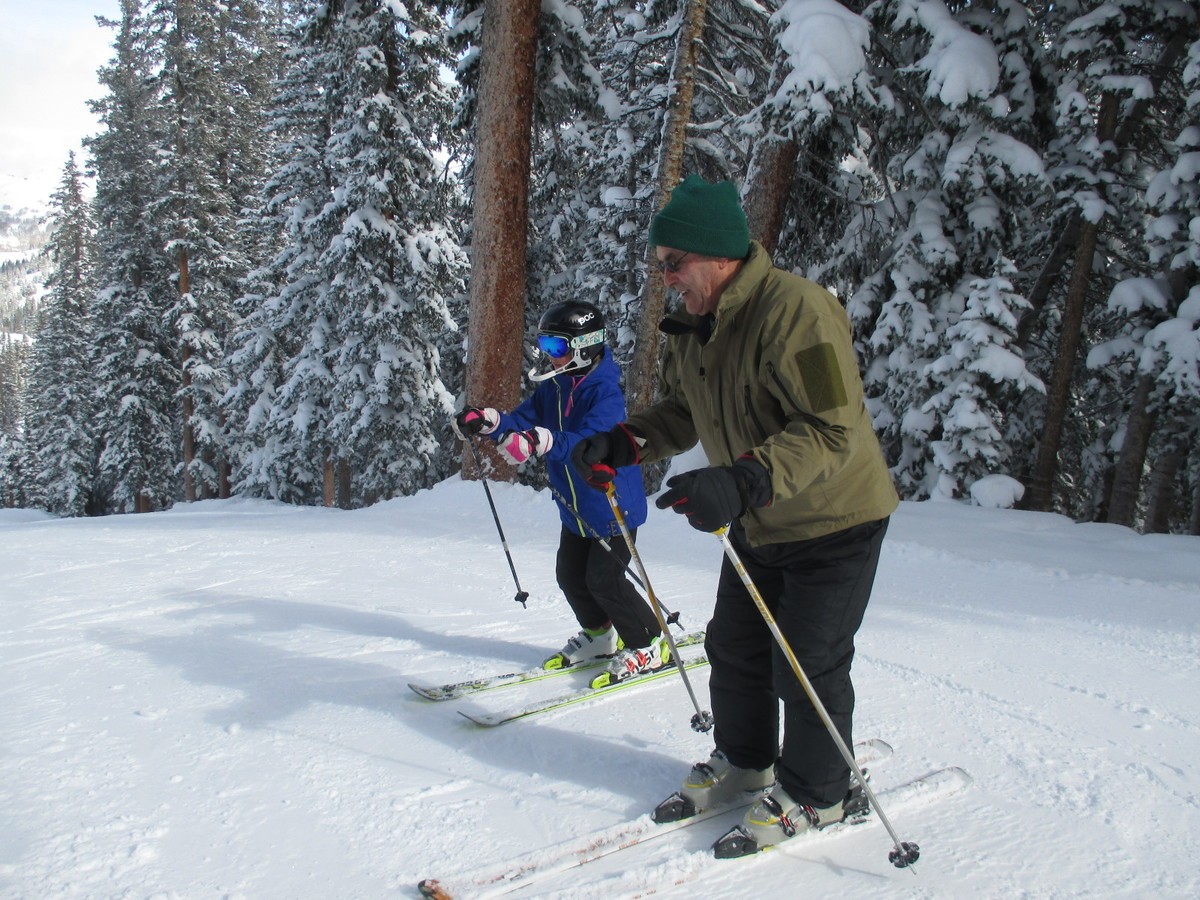 We got off of Crest lift at the top and the kids wanted Grandpa to watch their turns. They have one speed-FAST. We got down one part of the slope and Gramp says "kids, don't go so fast, I can't even see you and I'm out of breath". So things slowed down to not quite as fast and we continued on down. Grandpa followed in Emily's turns-just like the instructors did when they were little. He said "you know, I'm learning from you Emily on how to do my turns and where to put the weight on my skis. It's amazing to follow someone else and study their stance to see what they're doing." Yep, that's why they encourage lessons Grandpa, and why taking lessons is so encouraged!