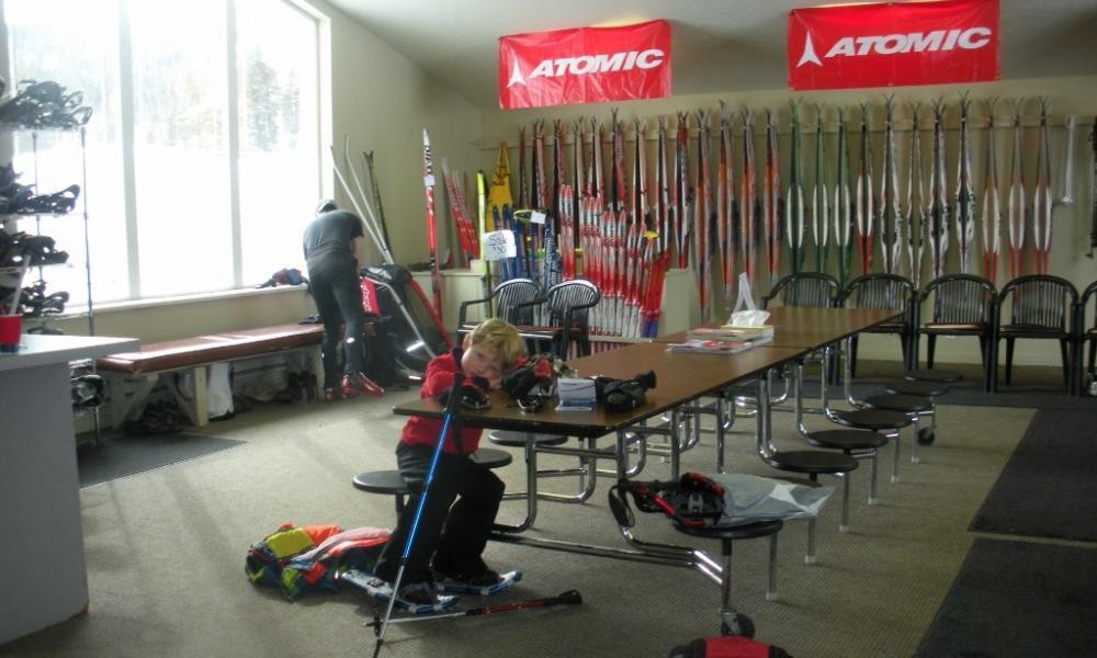 On this day Brennan was less than excited to snowshoe, so I had to make it fun. I bought snowshoes last winter from Costco for the kids. They are inexpensive and came in a bag with poles. One bit of advice, use only one pole with the kids as you will probably end up carrying them by the end. Get ones that have quick snaps so you can tighten and pop around the back of the boot. For kids, you don't need to go with a high end snowshoe as their feet grow too fast. A little crampon-metal, claw underneath-is fine as you will not be doing big mountain climbing at this stage. Also, regular snowboots are just fine. Most of the trails have a gradual slope and are very well marked. Bring a backpack with water and a few snacks. We grabbed a map and all the trails are color coded and named. When starting at the Nordic Center, you can go all the way to Solitude on your snowshoes.