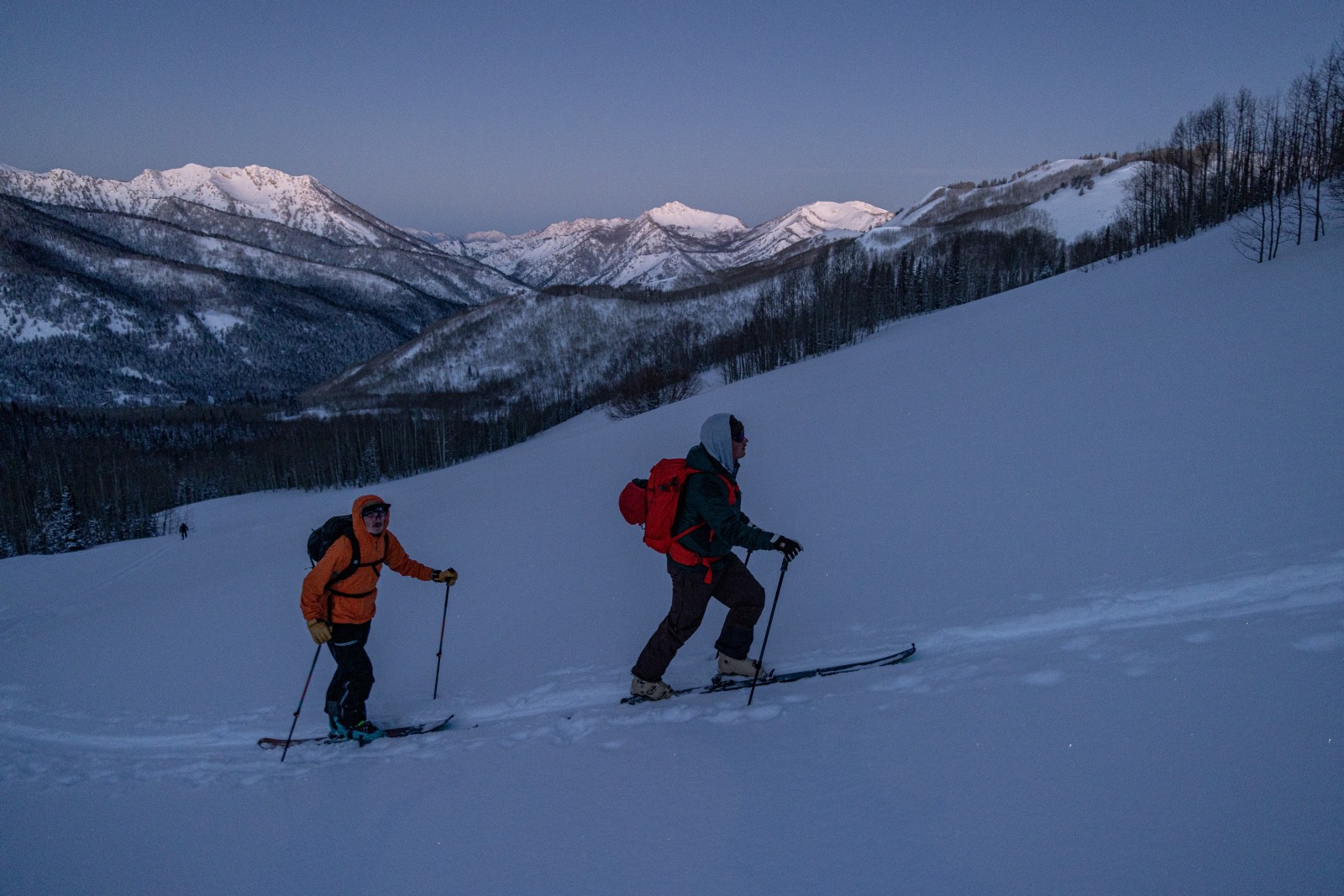 We’re not alone at the top of the peak, a pair of neon-clothed skiers are performing the checks on each other that Henry and I did at the start of our day. Pleasantries exchanged, the four of us make the descending dance downward. Cheering and fist-pumping continuously echoed in the small valley. Near the roadside, we exchange highfives with the strangers turned friends.