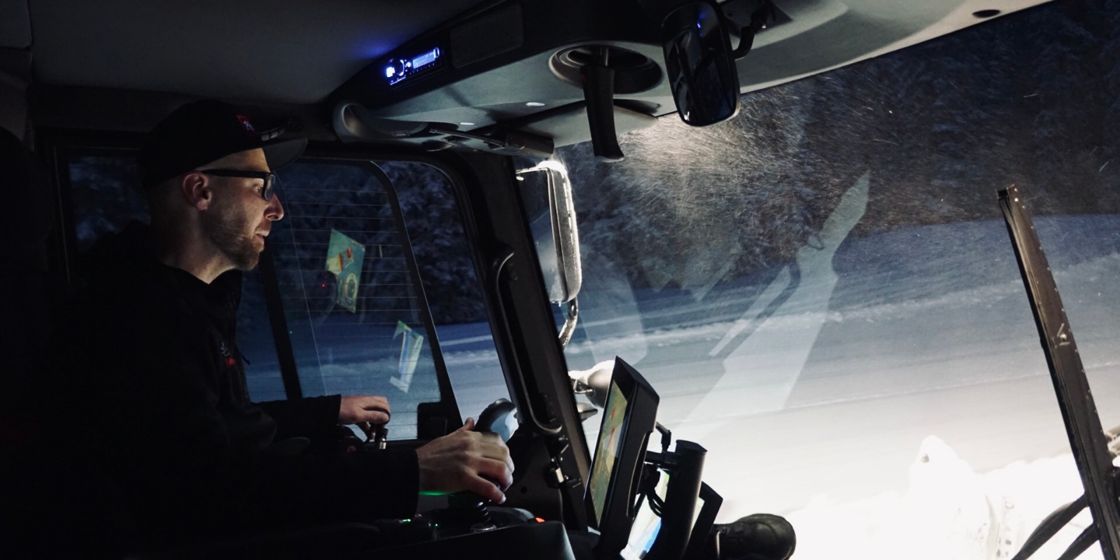 But you don’t need a background in the industry to land a job as a snowcat operator. Adam actually hired two “never-evers” just this season. At Brighton, the newbies will start out observing a seasoned operator for a few shifts and then complete a number of shifts under supervision. New operators will often work on the lower mountain tackling simpler assignments until they gain experience and confidence. Previous operating experience isn’t required, though it does help! Adam estimates that it takes about a season’s worth of work to hone proficiency in becoming a great cat operator.