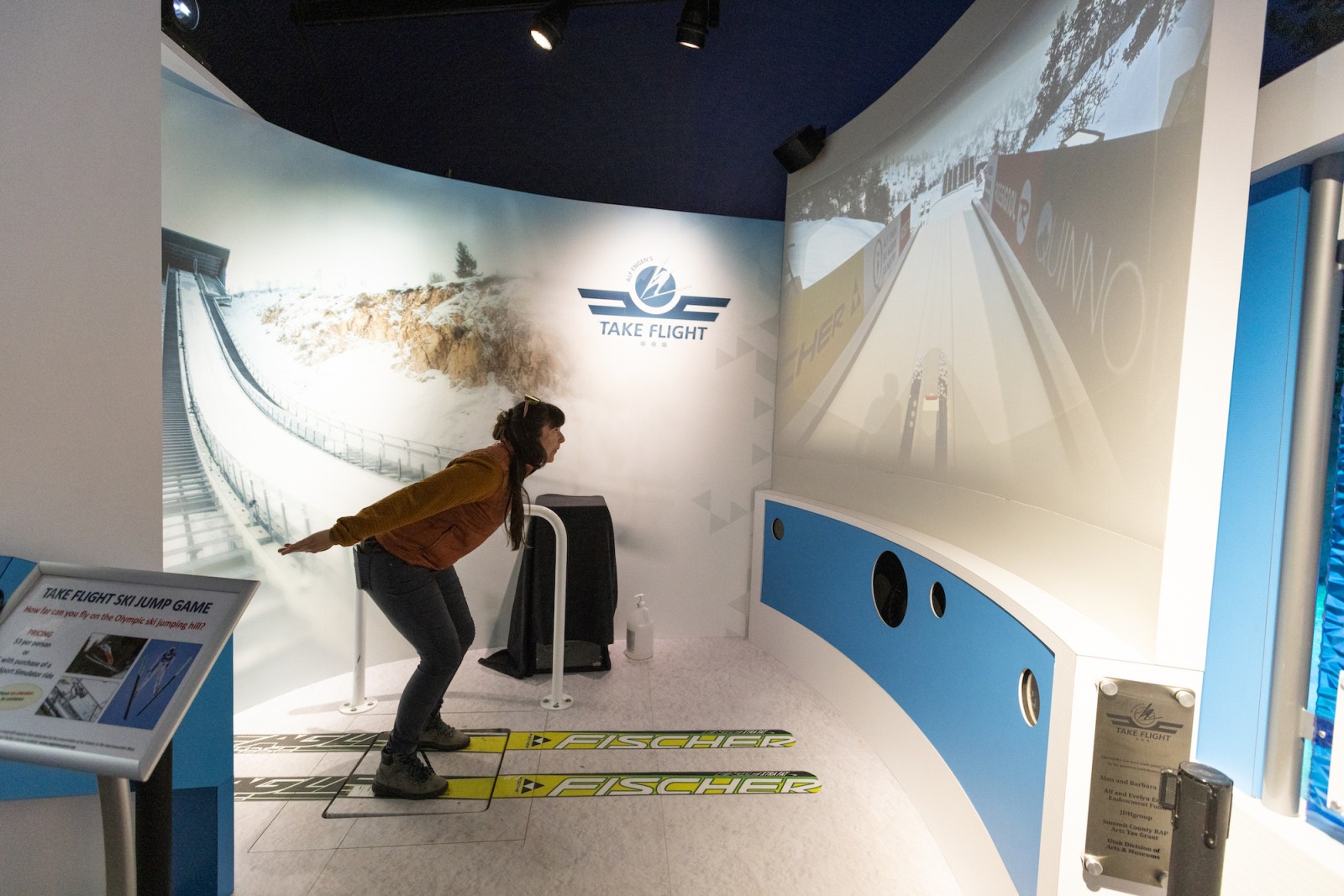 Think you have what it takes to be an Olympic-level ski jumper? The Ski Jump Simulator places you atop a virtual ski jump ramp (identical to the real one just steps away outdoors). You're given a brief tutorial and the wind speed and then it's up to you to take the leap!
