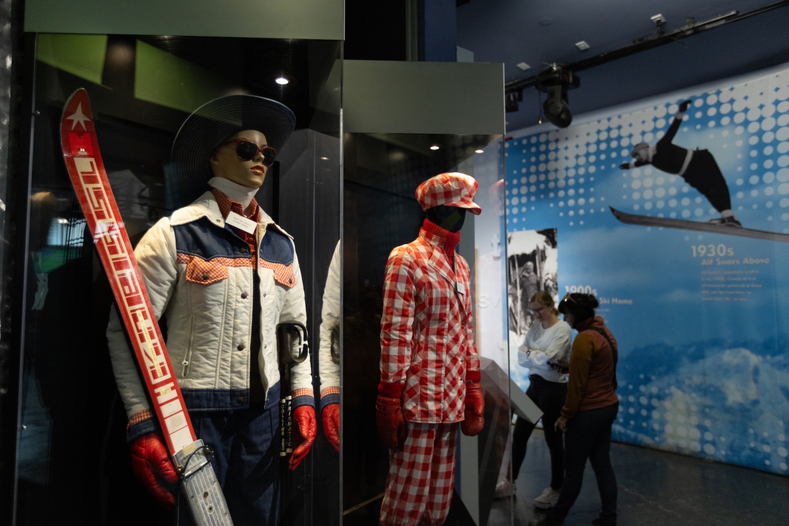 First up, you'll enjoy a colorful collection of ski wear through the decades. This tribute to the wild and sometimes wacky aspects of ski "fashion" is the personal collection of Barbara Alley Simon and it's fun to witness the evolution of gear and accessories over the decades.