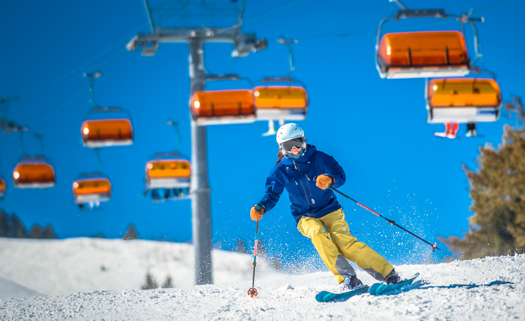 Payday Express and Crescent Express grant access to winding green trails, steeper blue rated terrain and a handful of black diamonds. Crescent provides quick access to one of the more popular chairs on the mountain, the high-speed 6 pack King Con Express. This chair serves up quite a few blue cruisers and also connects to the Quicksilver Gondola and the Canyons Village area of the mountain. Intermediate skiers won’t want to miss the view from the top of McConkey’s on a clear day. Once you’ve absorbed the scene of Mt. Timpanogos, Heber Valley, and the distant Uinta Mountain Range, catch the winding Georgeanna blue run down.