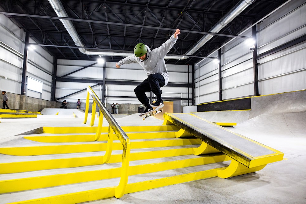 • Pump Track – An indoor flow track integrated with rollers, rails, and features for scooters, BMX bikes and skateboards