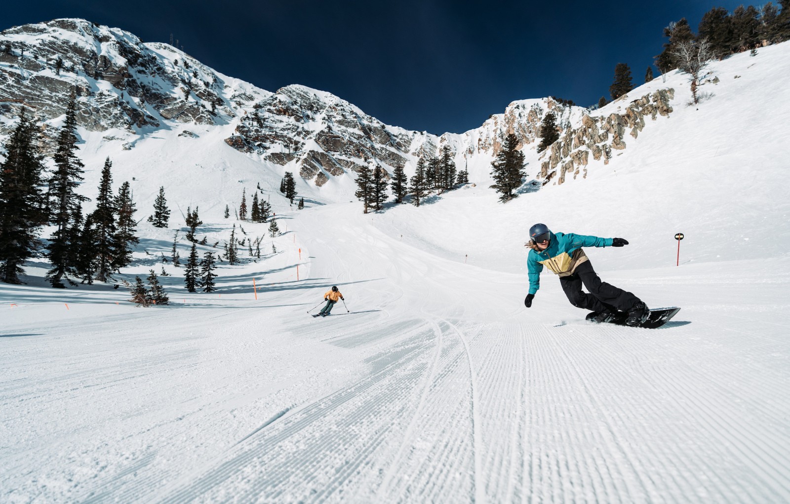 With a 3,000-foot vertical drop across six distinctive peaks and airy alpine bowls, Snowbasin is a world-class resort. Don’t believe us? Just ask the Olympic and Paralympic downhill skiers who vied for gold on Snowbasin’s amazing slopes during the 2002 Olympic Winter Games. Some of the longest and most scenic groomers in the state of Utah can be found here. Soak up striking views of Ogden Valley below as you swoop down perfectly manicured pitches.
