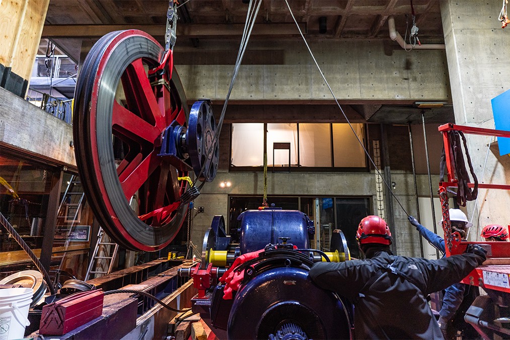 Jake admits that the challenges of timing, delivery, and international shipping to the US were manifold. It was a complex endeavor to plot installation amid shipping windows, shipping delays and the arrival or holdup of various parts or components; it was a never-ending puzzle. Jake and his crew worked tirelessly to tackle the ongoing challenges of even just transporting all the new parts into the tramway's Drive Room. This took hours of complex rigging and planning, just to get the new parts in place prior to installation. In some cases, equipment had to be lifted up with rigging and passed through windows with only a few inches to spare.