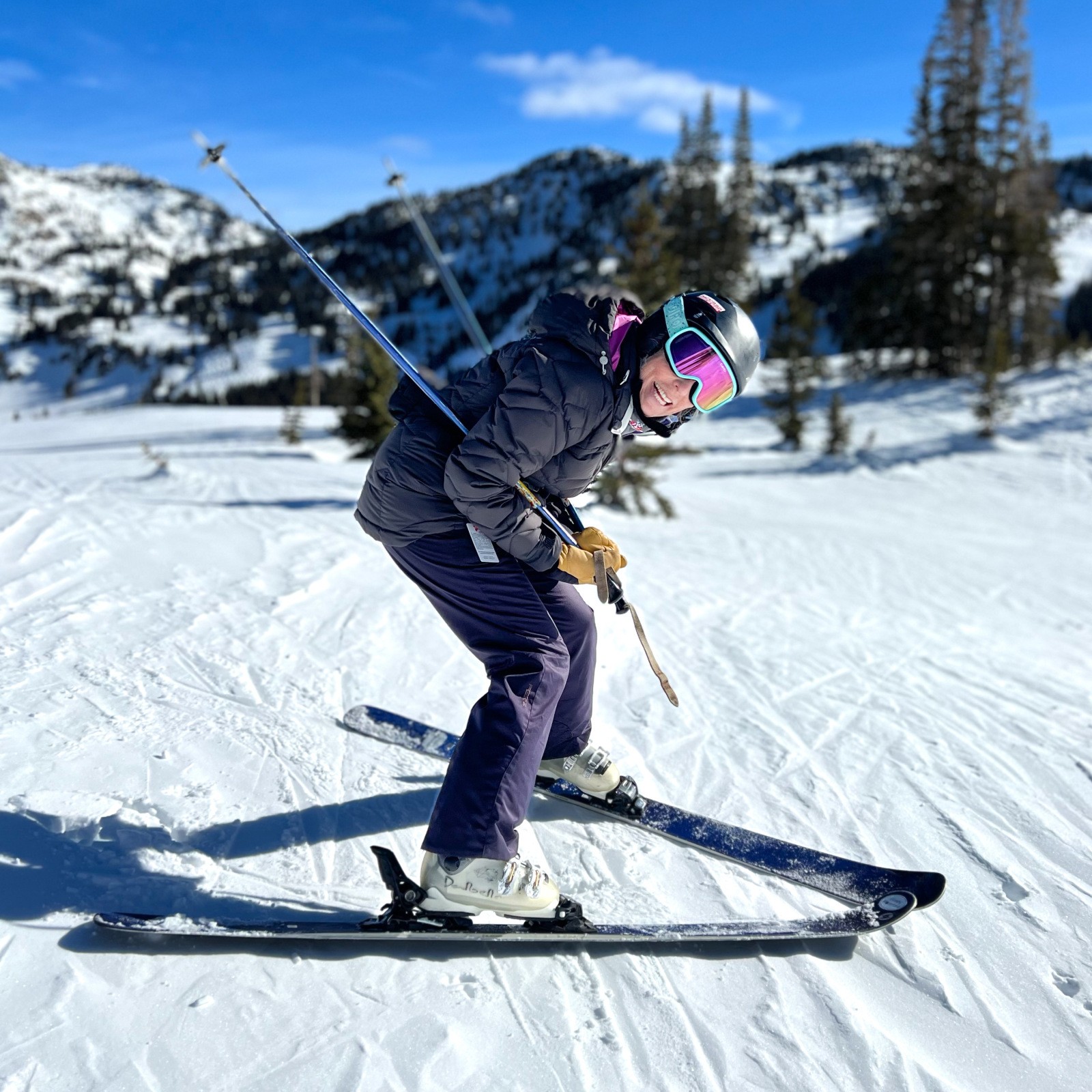Such “toy soldier” shots are my single pet peeve. My ski friends roll their eyes when I bark at them to “Strike a pose,” “Throw your hands (or skis) in the air,“ or “Lay on the ground!” However, they typically agree (and repost) these active, grinning and even goofy pictures showing (accurately!) how much joy we experienced that day skiing on the mountain.