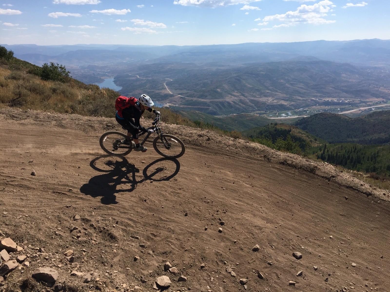 Strong beginners and intermediate riders will enjoy riding up Dutchman Way, a smooth, gentle, curvy trail that gets you higher up the mountain without taxing your lungs too much. When it meets Dutch Hollow, turn downhill, ride about 100 feet, and catch Top Notch. If you’re concerned about more climbing, fear not. You’ll likely stop several times to take photographs of the spectacular Heber Valley below with views of Mount Timpanogos and Deer Creek Reservoir in front of you and wonder whether you’re in Utah or The Alps. (If you can sing, please, feel free to belt a few bars from The Sound of Music as you climb.)