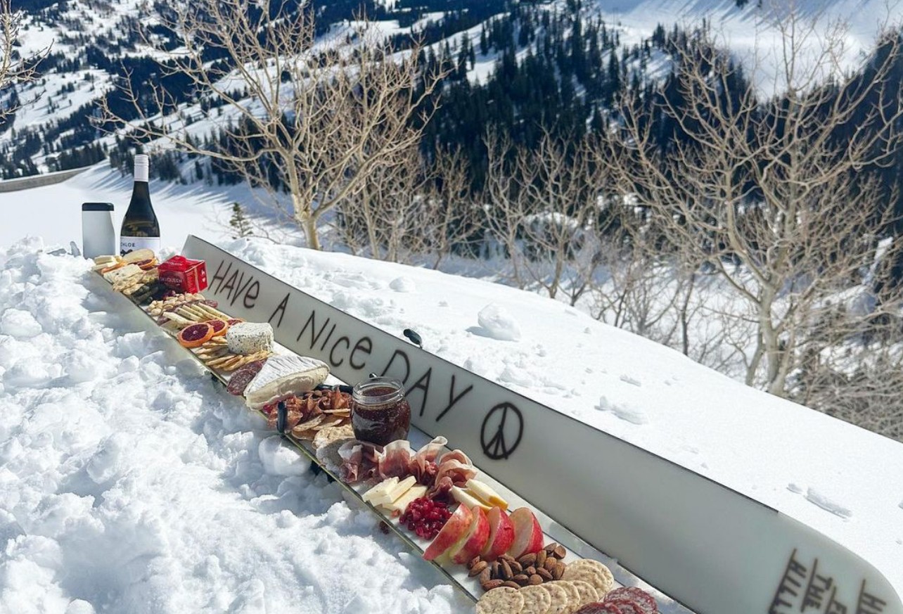 Charcuteski, despite its posh-sounding name, at its core, is a meal on a stick. It’s meant to be as simple, relaxed and unpretentious as the tow-bar at Alta Ski Area from Sunnyside to Collins but can be as elaborate as a multi-resort Interconnect Tour. However, despite the viral nature of social media, the folks behind Charcuteski began posting their photos of peanut butter and jelly sandwiches and other pedestrian snack foods atop their waxed planks as a salute to the simplicity, affordability and commonality of skiing.