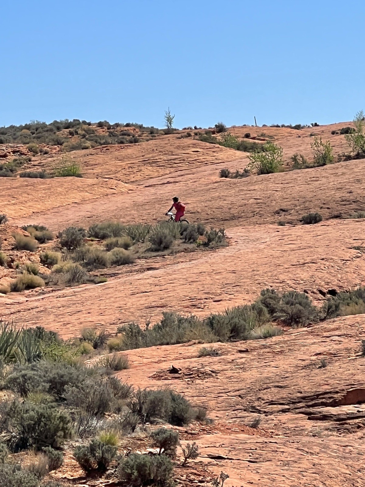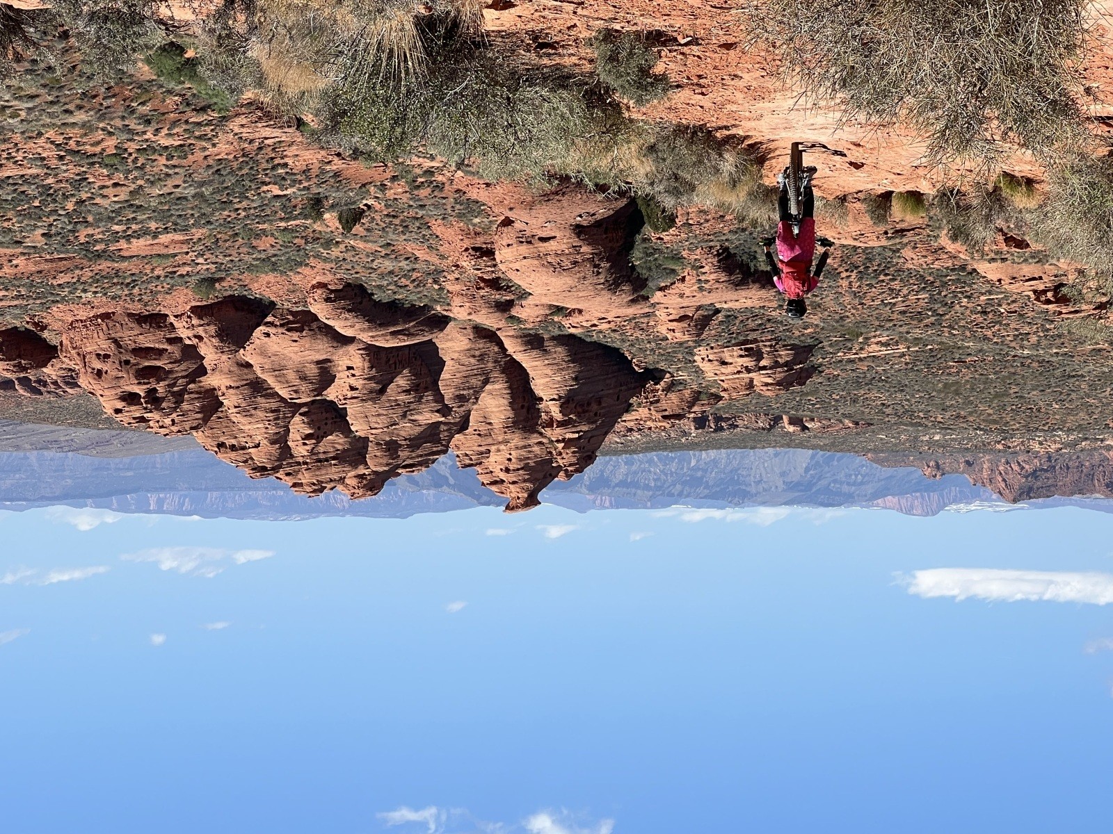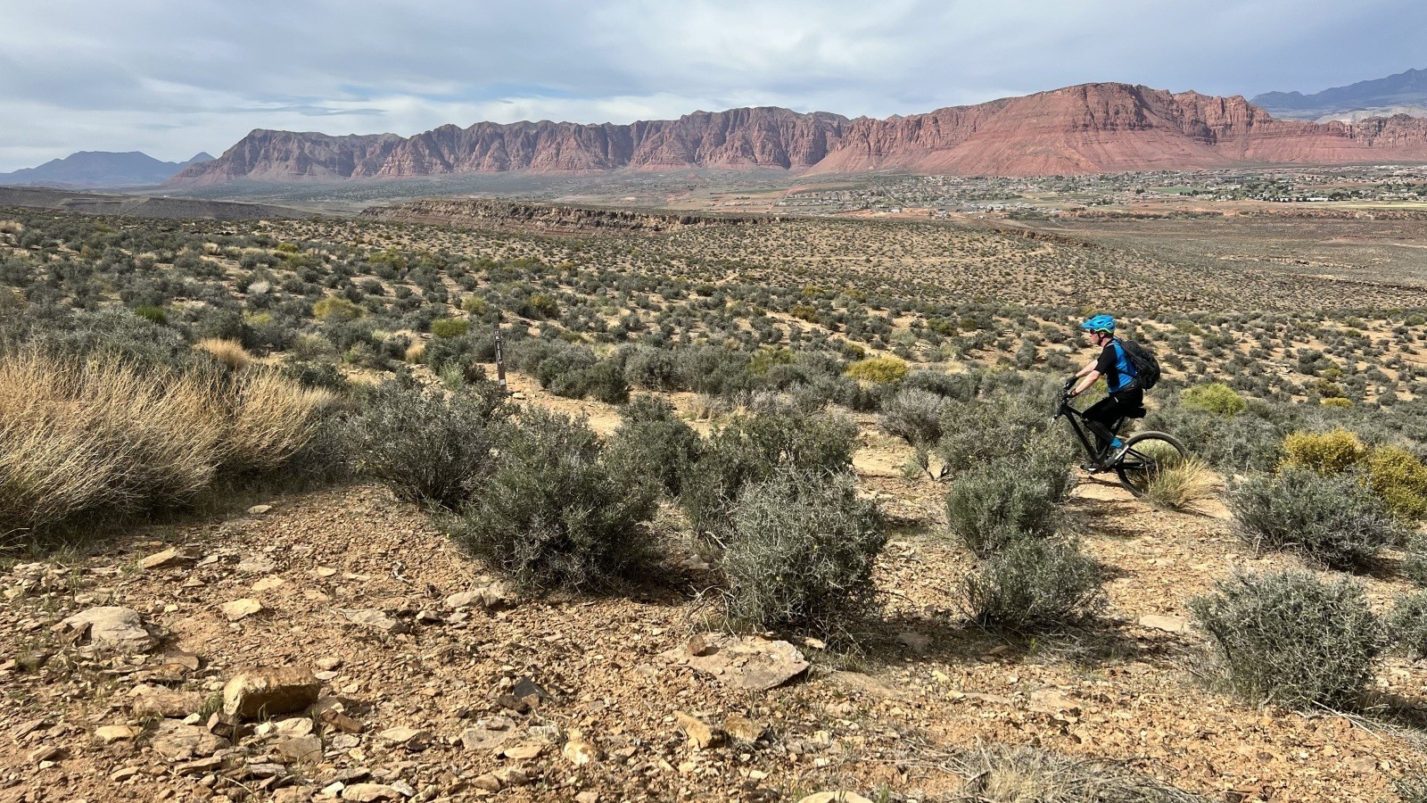 After months of skiing at Northern Utah resorts (yes, it’s really rough living in Utah), we decided to wake up our legs and lungs from hibernation with a late afternoon ride on Barrel Roll. Located at the Cove Wash Trailhead in the nearby Santa Clara River Preserve, this six-mile intermediate loop with little elevation provided stunning views of red Navajo sandstone cliffs to the snow-capped Pine Valley mountains. A moderately technical trail (which translates to “you can see the rocks before you eat the rocks”) that moved from smooth singletrack to the occasional “there’s no way I’m riding that,” Barrel Roll provided the right mix of confidence-building and challenge and reminded us why we love this area so much.