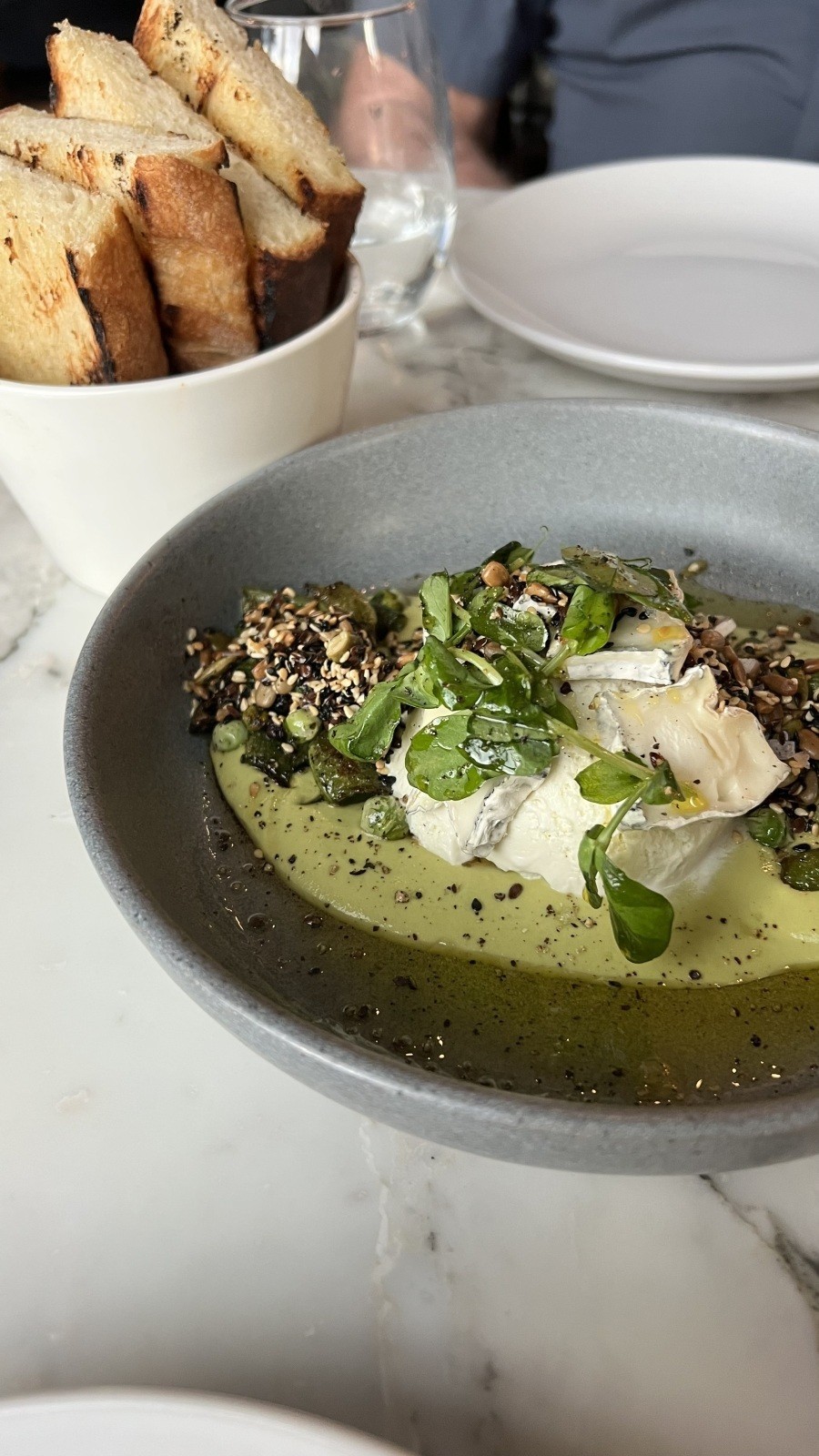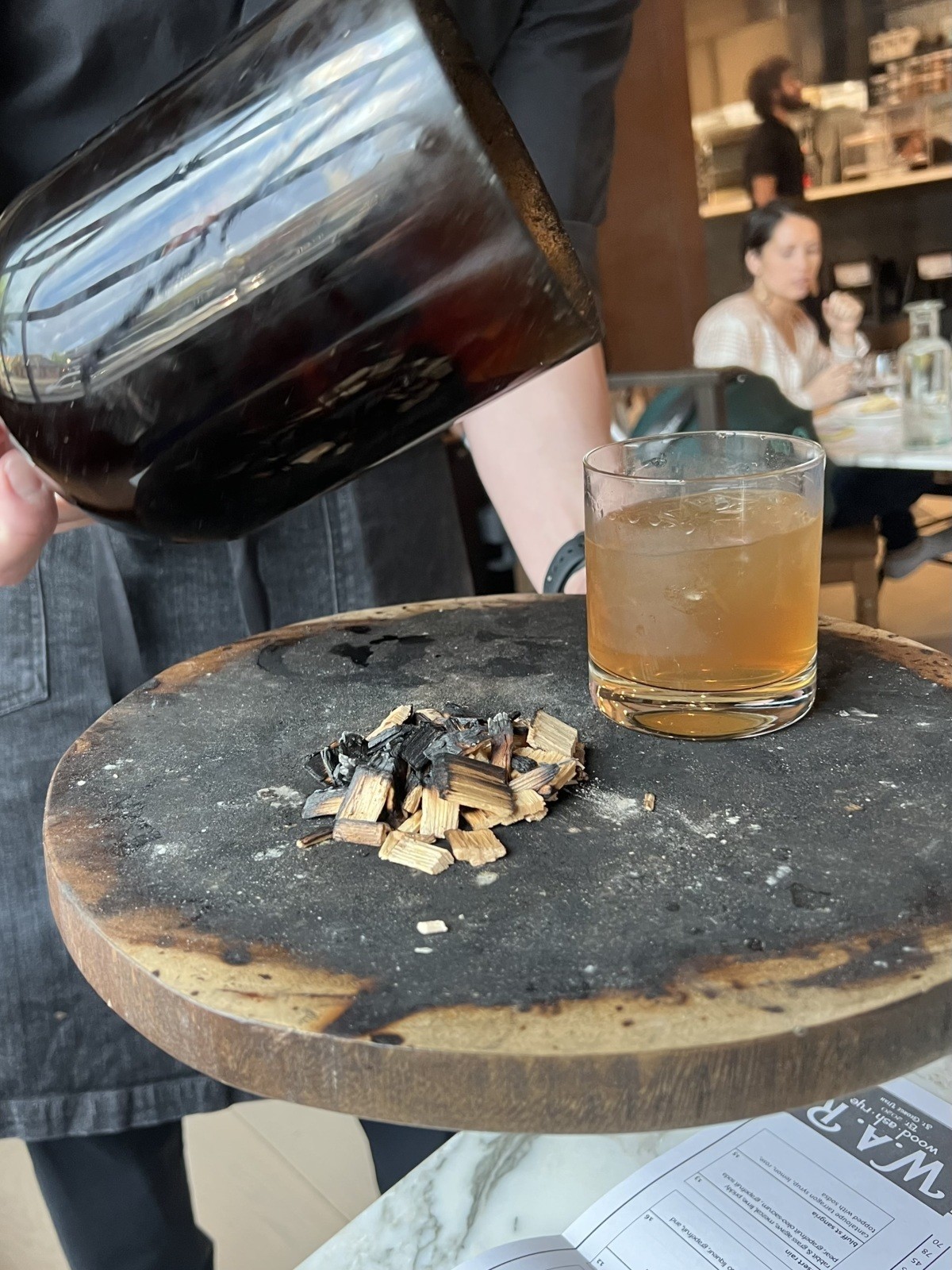 Back at the hotel, the “bike valet” gave our carbon steeds a complimentary bath while we leisurely enjoyed the rooftop hot tub and indoor claw-footed tub before heading downstairs to dinner. With the appearance and menu resembling a hip urban bistro, patrons of Wood Ash Rye were donning everything from large silver hoops to tight Ironman tees, but all were hungry and treated to an exceptional rotating seasonal menu. While enjoying its signature cocktail revealed tableside under a cloche of smoke with an actual campfire, we applied my “What am I least likely to make at home?” selection method. Starting with a strawberry and roasted tomato gazpacho and a fist-sized serving of artisan goat cheese accompanied by snap peas and seasoned puree topped with toasted sesame seeds, we, then, shared a plate of braised lamb korma with house-made hummus, topped with pine nuts, mint & scallion oil and served with fresh, wood-fired naan bread. All delicious!