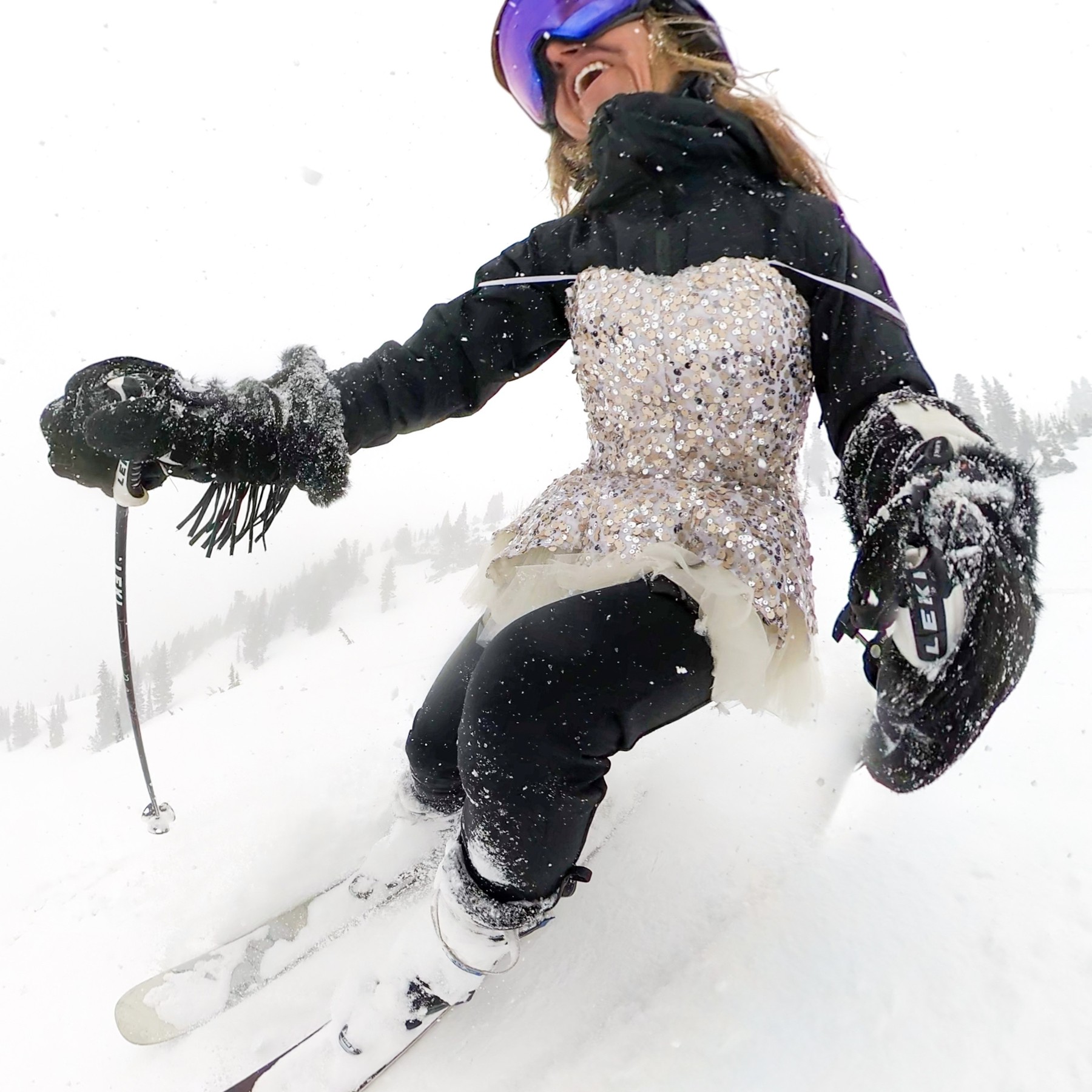 Ski photography suffers from the fact that much of canvas consists of a bunch of white space that gets pretty boring after the fifth or fiftieth shot…or post (a note to friends of the Gram). Wearing colorful ski outfits or even costumes or sequins brightens things up.
