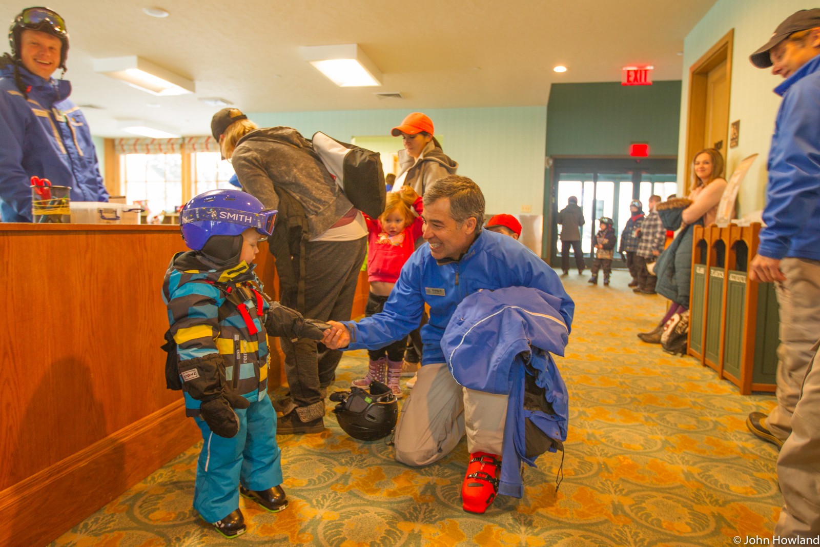 From there, ski lessons are considered a "Parent-Free Zone." No helicopter (ski) parenting! Although they are often welcome to meet up for lunch or hot chocolate breaks, parents may not attend their kids' lessons. It distracts their children, other children in the group and, frankly, the instructors. White acknowledged that most parents know to stay away, but occasionally, one will "ski along" or pop out from trees to "just check on" or take a picture of the little one. She advises parents, "Hide well because as soon as your child sees you, her attention is divided," the lesson slows down and, in some cases, is effectively done.