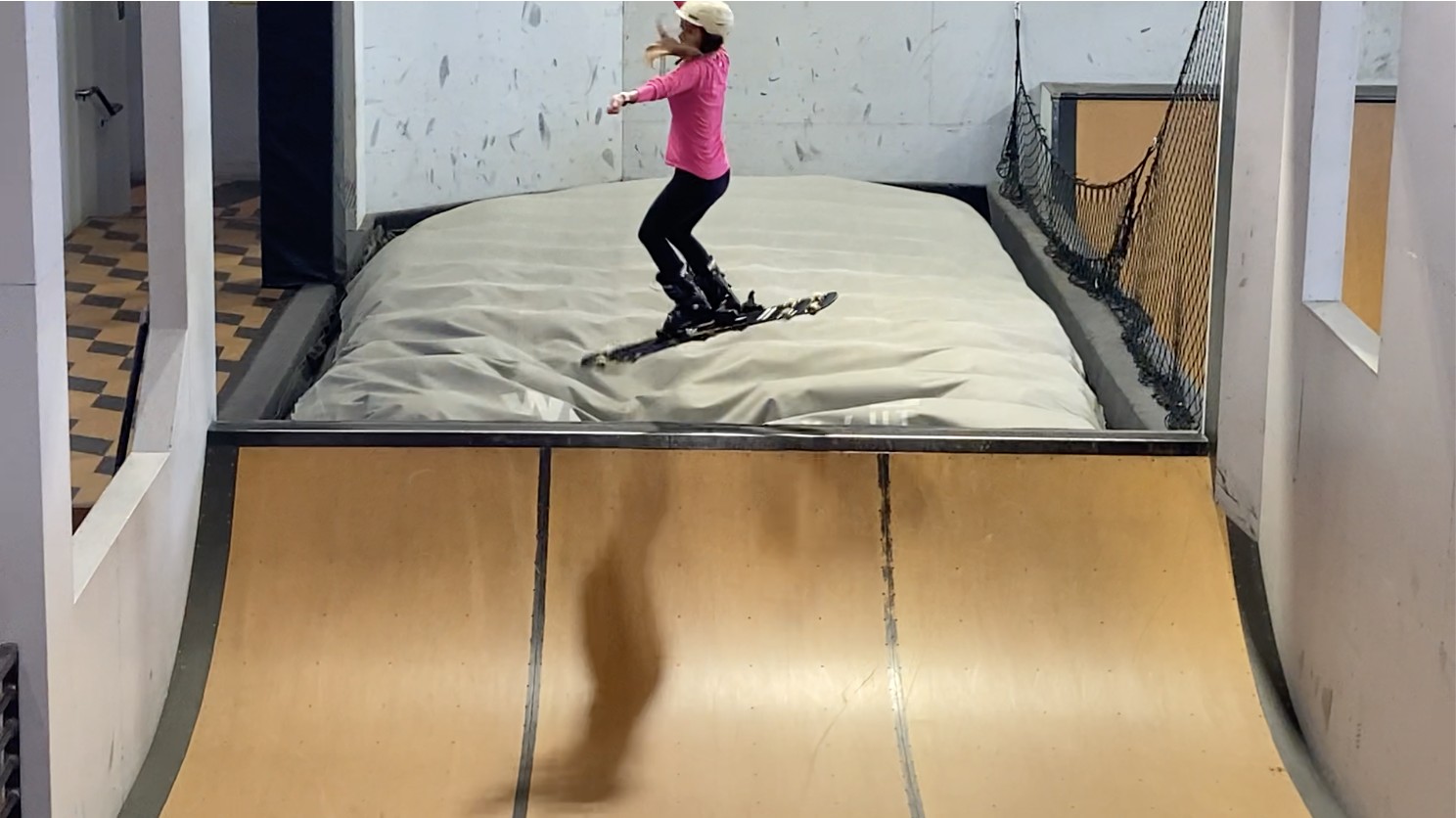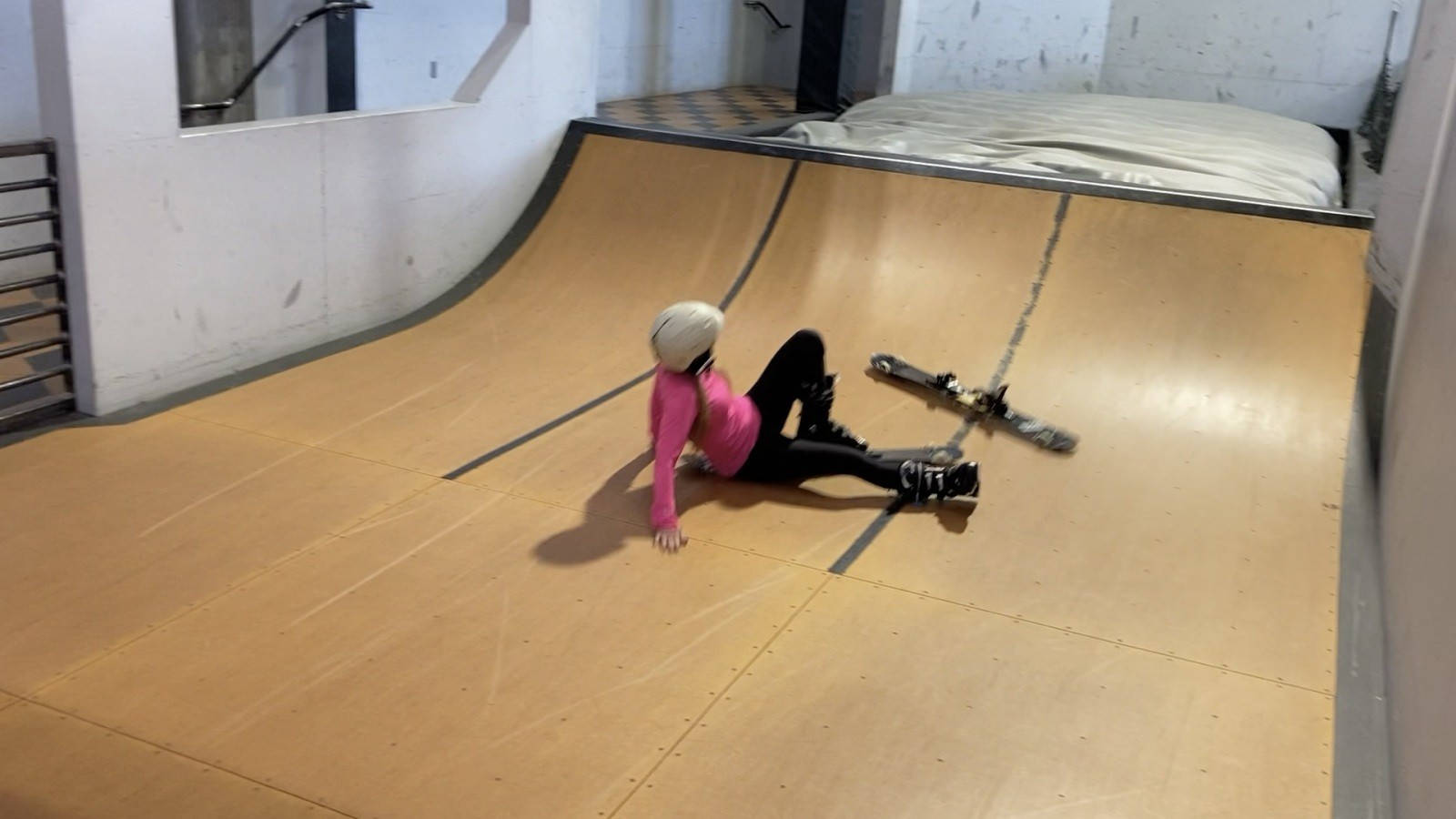 I dropped in off the ramp numerous times. Launching, landing squarely, and spinning 180 degrees. I had it, I wanted to do more, but Felix kept bringing me back, “I want you to feel confident before we head out to the snow.” I knew where to put my weight, my arms, my head as well as my mind. I could feel my stomach drop without losing my lunch. I felt verrrrry confident…until I went out to the snow.