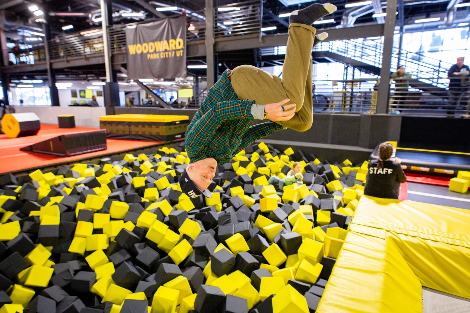 “We’re going to start off easy,” Felix Sjӧstrӧm, my Woodward instructor, calmly said. He said this multiple times in some fashion. I think he was as nervous as I was. Looking around the indoor ‘adventure hub,’ I was clearly the oldest human to hit the trampolines and, soon afterward, ramps and foam pits, but there was absolutely no age limit…for anything there. Because my goal/declaration/mandate was to “learn a trick,” and I was only taking a single three-hour lesson, the biggest challenge — for Felix and me — was determining what that challenge would be! So, we started on the trampoline to see what I could actually and realistically do.