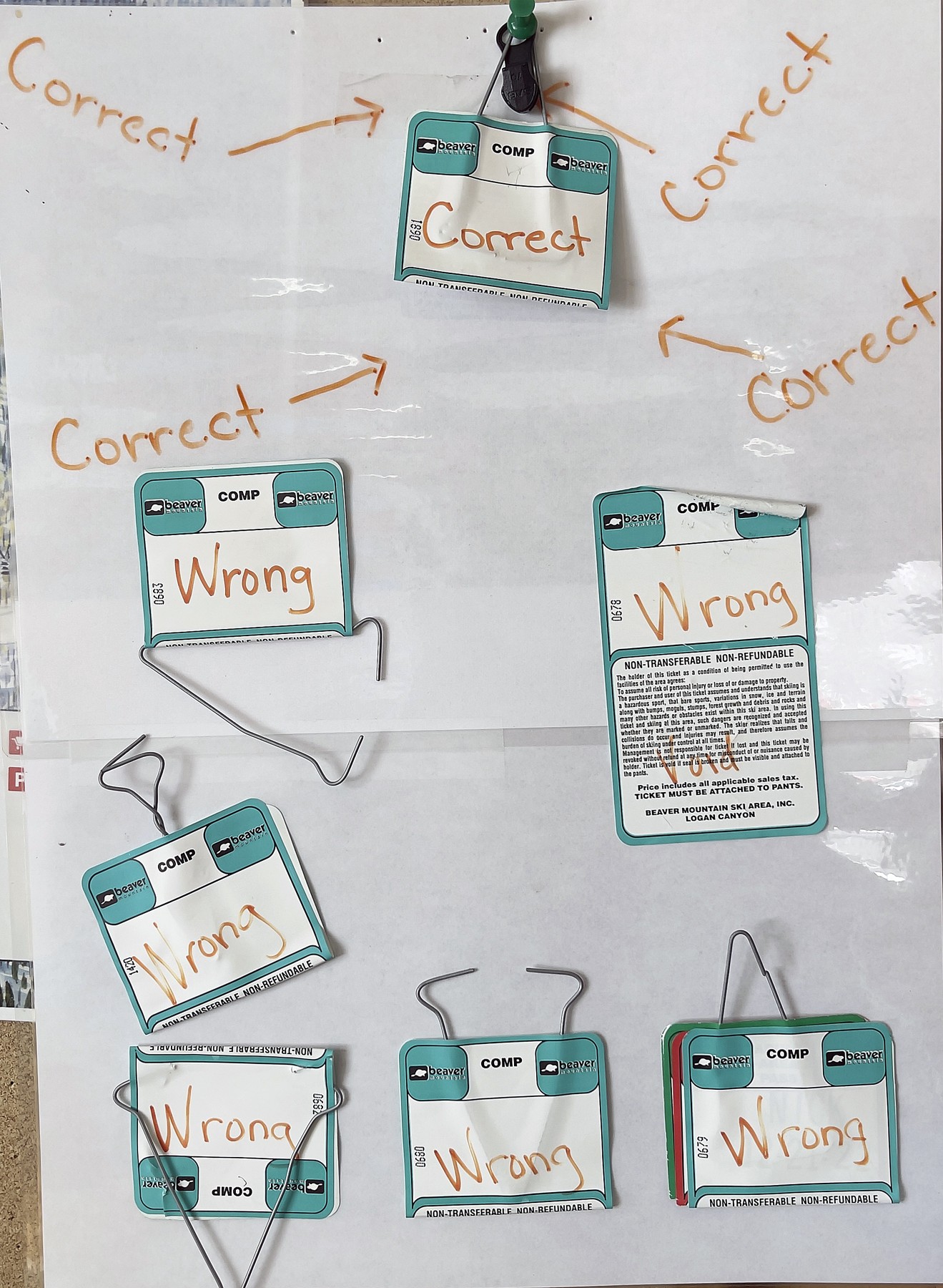 At Beaver Mountain there are no RFID ticket cards. Each day skier gets a sticky ticket and a wicket. If you don’t know how it works, Marge has an instructional poster in the ticket office.