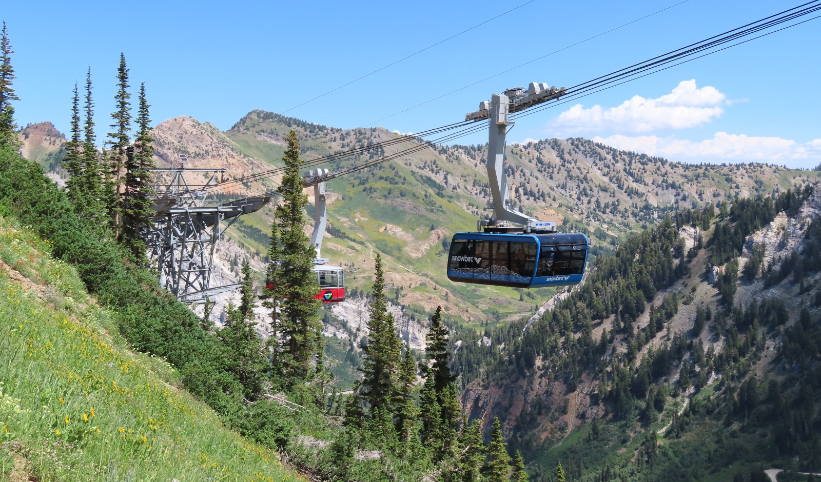 Old and new, as the Snowbird tram cars pass by each other this past summer. (Peter Landsman)