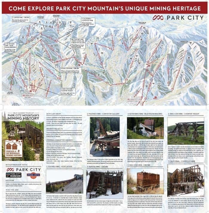 An offshoot of the Park City Museum, the Friends of Mountain Mining History has been a crucial advocate for the preservation of the 20 historic mine structures on Park City's mountain trails. Vail Resorts and Park City Mountain have been valuable partners in the stabilization of the Thaynes conveyor, King Con counterweight, California Comstock mill, and the Jupiter ore bin among other sites.
