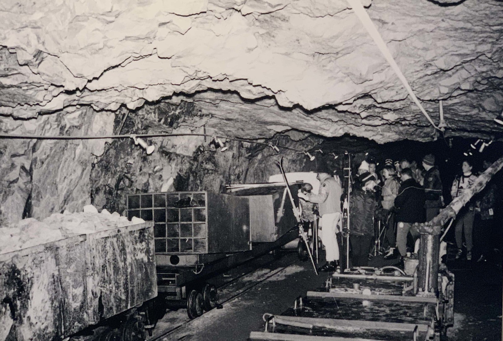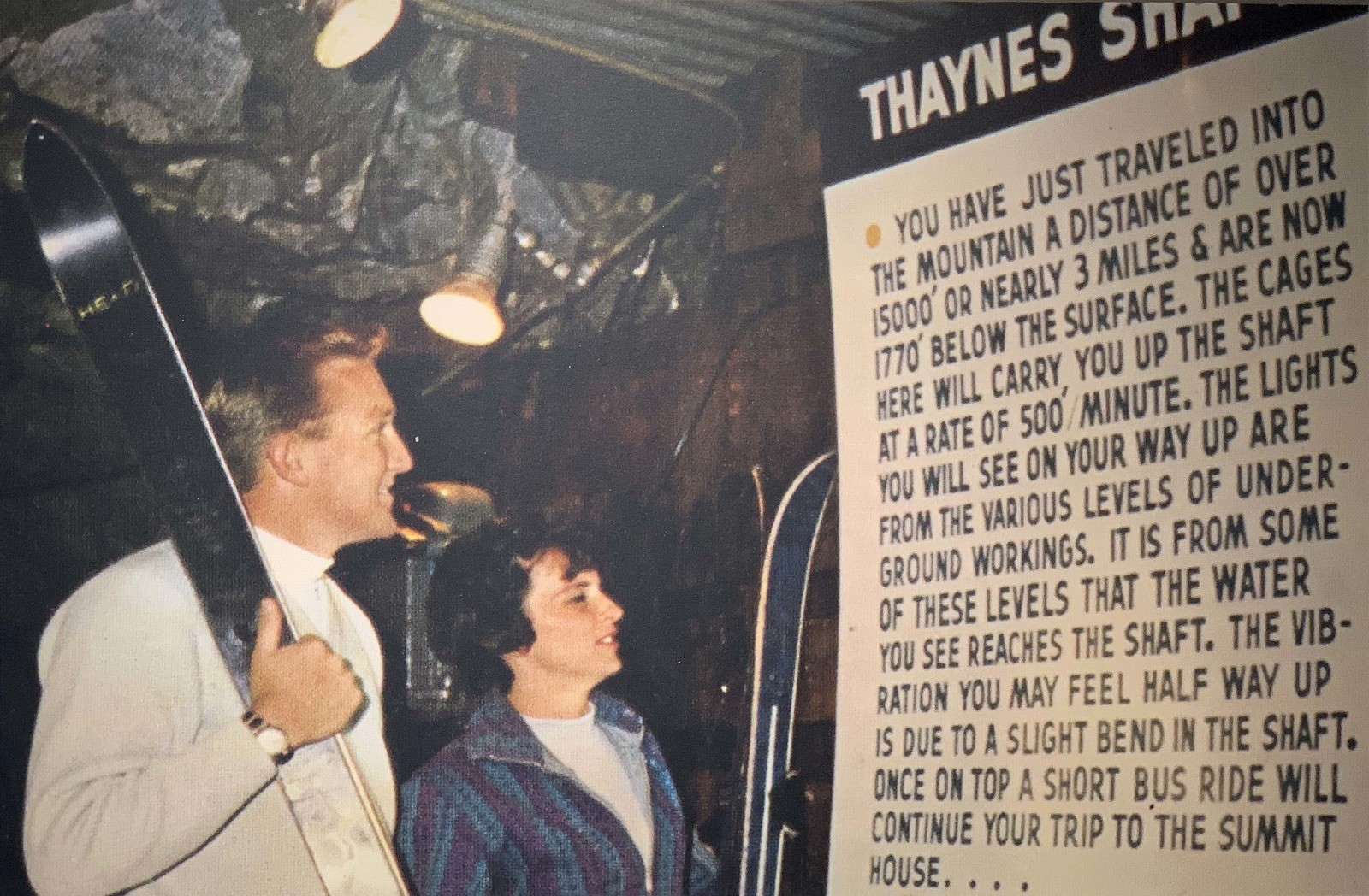 Sandy Melville: They would load them in the cage. The skiers, they'd load in the cage at the base of the Thaynes shaft then and pull them at seventeen hundred feet to the surface where they'd come out of the shaft onto the snow, right to where we enjoyed stopping on our ski tour. Miners described being in open cage as being the feeling like being buried alive now you can imagine it's not very well lit. It's an open cage. There's this damp, earthy smell as you're proceeding along the area up or down the shaft. So it really is a kind of a creepy feeling. And it wasn't the whole thing wasn't that enormously popular with our with our guests. The ride out was rather long and the ride up the hoist was scary. And when they arrived to the surface many times, they were sort of damp and dirty. And of course, when they would hit the slopes and their woolen ski wear of the era would instantly freeze. So it was kind of an uncomfortable experience as well. But they would they did use it and they proceeded then to the thanes lift where they could have access to that great skiing in the Thaynes area. I actually had and my tours every year I will have a guest who has ridden the skiers. We called it the Skier Subway, the Thaynes skier subway. And some people say, well, it wasn't that bad. And other people say, I would only do it once. It scared the daylights out of me. So there was a mixed reaction to it. The resort only operated it for about four years, and then they discontinued it as being probably a risky operation that wasn't serving its purpose as well as it could.