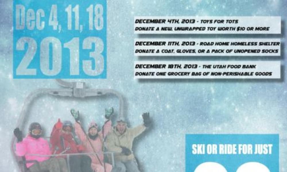 Quad Wednesdays now mean $20 day passes with a charitable donation: a toy for Toys for Tots, a grocery bag full of food for the Utah Foodbank and an article of new clothing for The Road Home shelter.