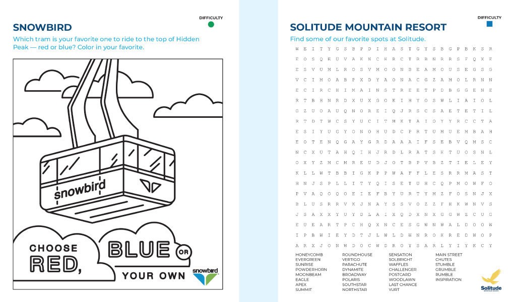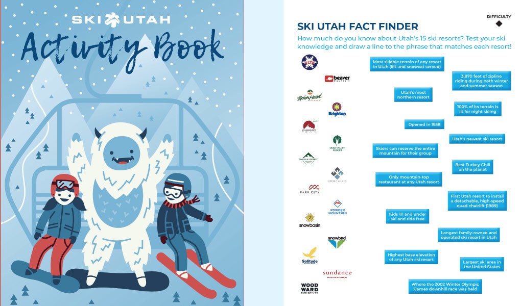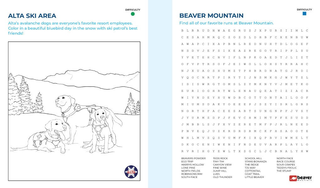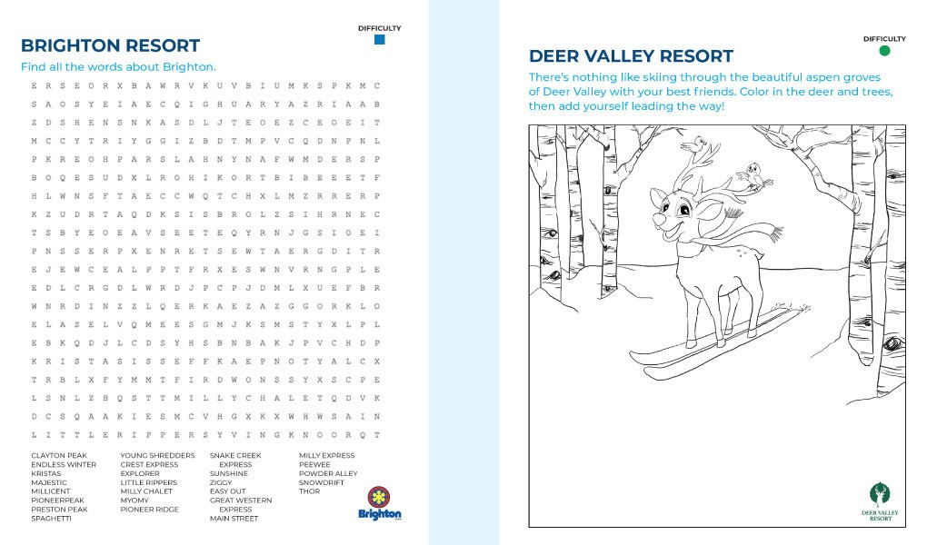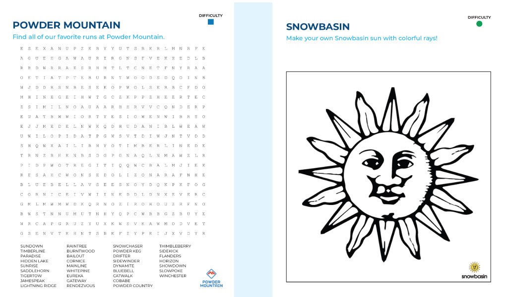 Download our new printable booklet with activities for all ages! A collection of coloring pages, mazes, word searches and crossword puzzles represent all 15 ski resorts in the state. Print them all, or just your favorite resort. Grab the crayons and show us your artwork.