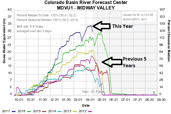 Our snowpack is nearly double the mean from the previous 5 years at this same time! Park City Mountain has had similarly impressive season: