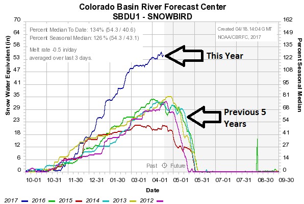 At Snowbird, we have spent almost all season with a well-above average snowpack: