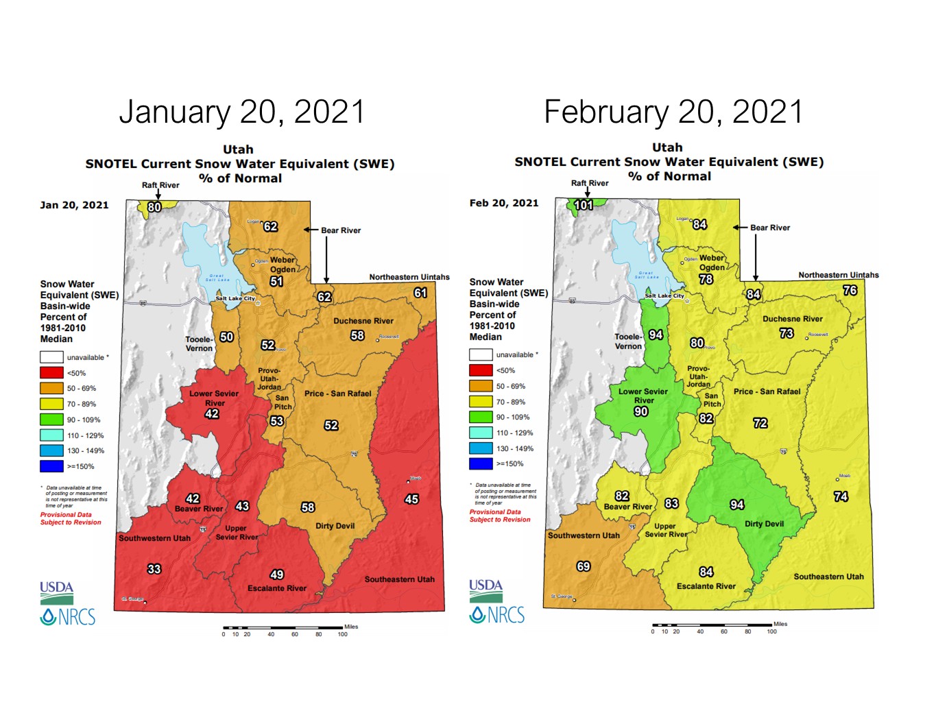 In one month, the Utah snowpack improved dramatically from well-below normal to close to normal: