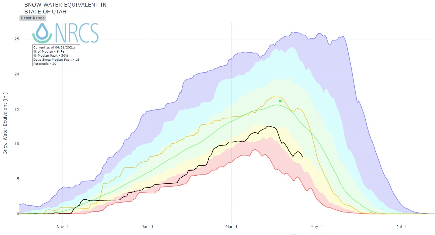 Here is the statewide average snowpack from over 80 locations: