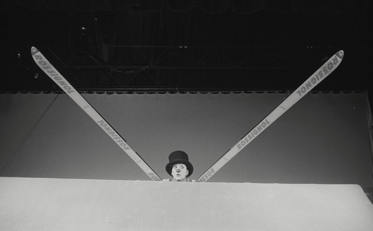 So why don't you know of him? His low key profile surges to effervescence when he performs in mime white face or coaches up-coming athletes on his 2 ton ski simulator.