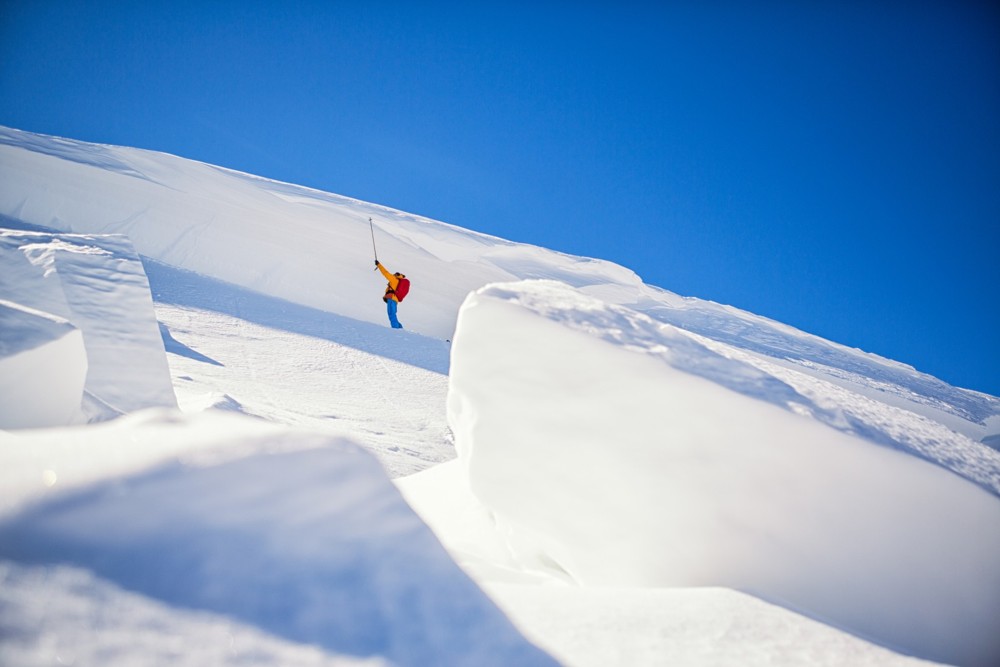 He adds, “A large metal shovel blade, a long probe, a digital beacon with multiple antennas and a pack that can easily carry and deploy these items are all essential to carry. Black Diamond and Voile, both based here in Utah, make and carry great gear.”
