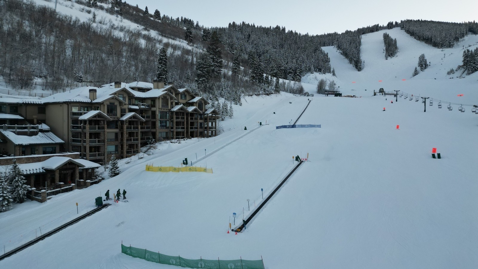 The project began with the removal of the Burns Lift, a fixed-grip, double chairlift located on the skier’s right side of Deer Valley’s signature Snow Park Base teaching run, Wide West. Burns had been in operation since Deer Valley’s 1981 opening and had essentially aged out of practical operational existence. But rather than replacing the old Burns with a new lift along its original route, chairlift access to Wide West was maintained by extending the base of the existing Snowflake lift down closer to Snow Park Lodge. The new configuration has not only provided more elbow room for beginners along Wide West—so much more, in fact, that a fourth conveyor lift was added to the run with plenty of room to spare—but has created a more delineated separation between Wide West and more advanced skiers descending along Solid Muldoon on their way to Snow Park. “We also regraded the top of Wide West where skiers disembark from Snowflake making that area less steep and more consistent,” says Steve Graff, Deer Valley’s vice president of mountain operations.