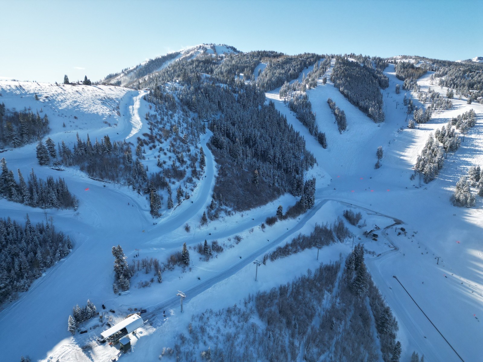 When the new Burns Express chairlift starts spinning, scheduled for late December 2022, beginner skiers will have an additional scenic route to explore. Starting from the top of Burns Express, skiers will descend the gentle, beginner-friendly Deer Hollow ski run before arriving at the Mountaineer Express chairlift. After riding up Mountaineer Express to the top of Little Baldy Peak, skiers will enjoy the expansive, inspiring views of Jordanelle Reservoir and the mountains beyond. From there, beginner skiers can choose between a pair of easier runs. Gnat's Eye is the easiest of the two while upper Deer Hollow offers a slightly steeper choice, although it is also a beginner run. Both runs will lead skiers back to Mountaineer Express or provide them with the option to glide over to Snow Park Lodge on the new, lower Gnat's Eye ski run.