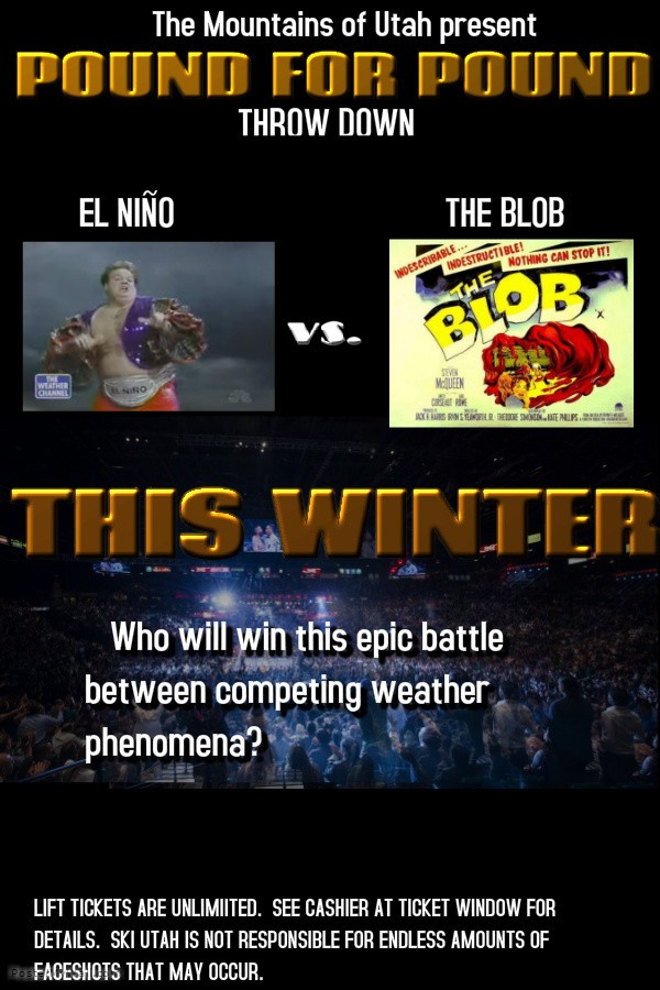 Luckily, Utah averages a truly remarkable amount of snow. Even if the Blob manages to get in a few good punches and take the sting off El Niño, we are still liable to receive plenty of fresh snow throughout the season. Short term weather forecasting is certainly far from an exact science, and long-range seasonal forecasting like this is still light years away, which means that anything can happen this winter. We could have a great winter, or we could have another sub-par winter. From the perspective of a diehard powder skier and weather nerd like me, it will be fascinating to watch this winter play out and see which of these forces wins the battle. Personally, I’m hoping for a strong El Niño to take down “the Blob”. No matter what happens, I will see you on the mountain!