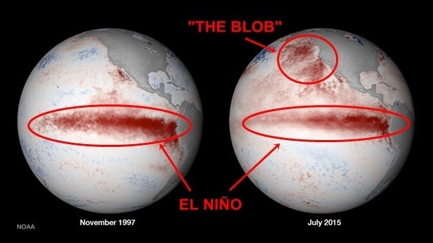 The challenger in this fight is a lesser known, up-and-coming phenomenon referred to as “The Blob”. Like El Niño, the Blob is a mass of warm water. However, this warm water isn’t confined to the tropical areas around the equator. This warm water inhabits the ocean off the Pacific coast of North America, most notably off shore of Oregon, Washington and British Columbia. While there has been extensive research regarding El Niño, the Blob is much newer, having first appeared and given the name “the Blob” just two years ago.