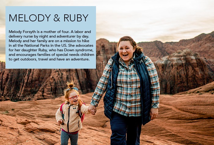 After experiencing Zion National Park and having fun on many hikes with my children, I was determined to continue the adventure. We made a goal to visit all the national parks with all our children, including our daughter Ruby, who was born a few months later with Down syndrome. When Ruby was 9 months old, we took her to Yellowstone National Park. I put her in the cheapest hiking backpack I could find, threw her on my back and had the most amazing feeling come over me. I was hooked.