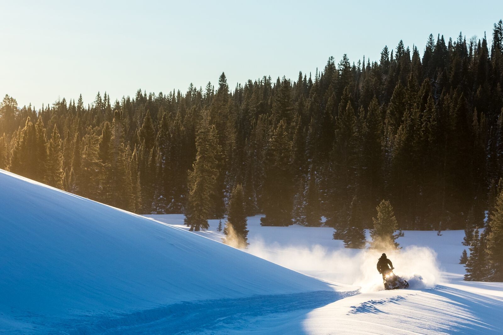 “Because there’s no real boxes I’m put in, I get to call athletes and ask if they are interested in doing a shoot for me,” she points out. “I can do sunrise and sunset shoots up there while we’re out our snowmobiles. I can look for the the best light, the best trees. It’s a really cool backyard to play in.”