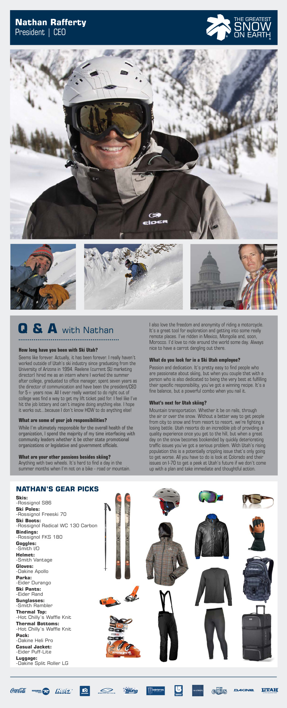 Meet Nathan Rafferty, Ski Utah's President, to take a look at the gear that makes his days on the mountain extra special.